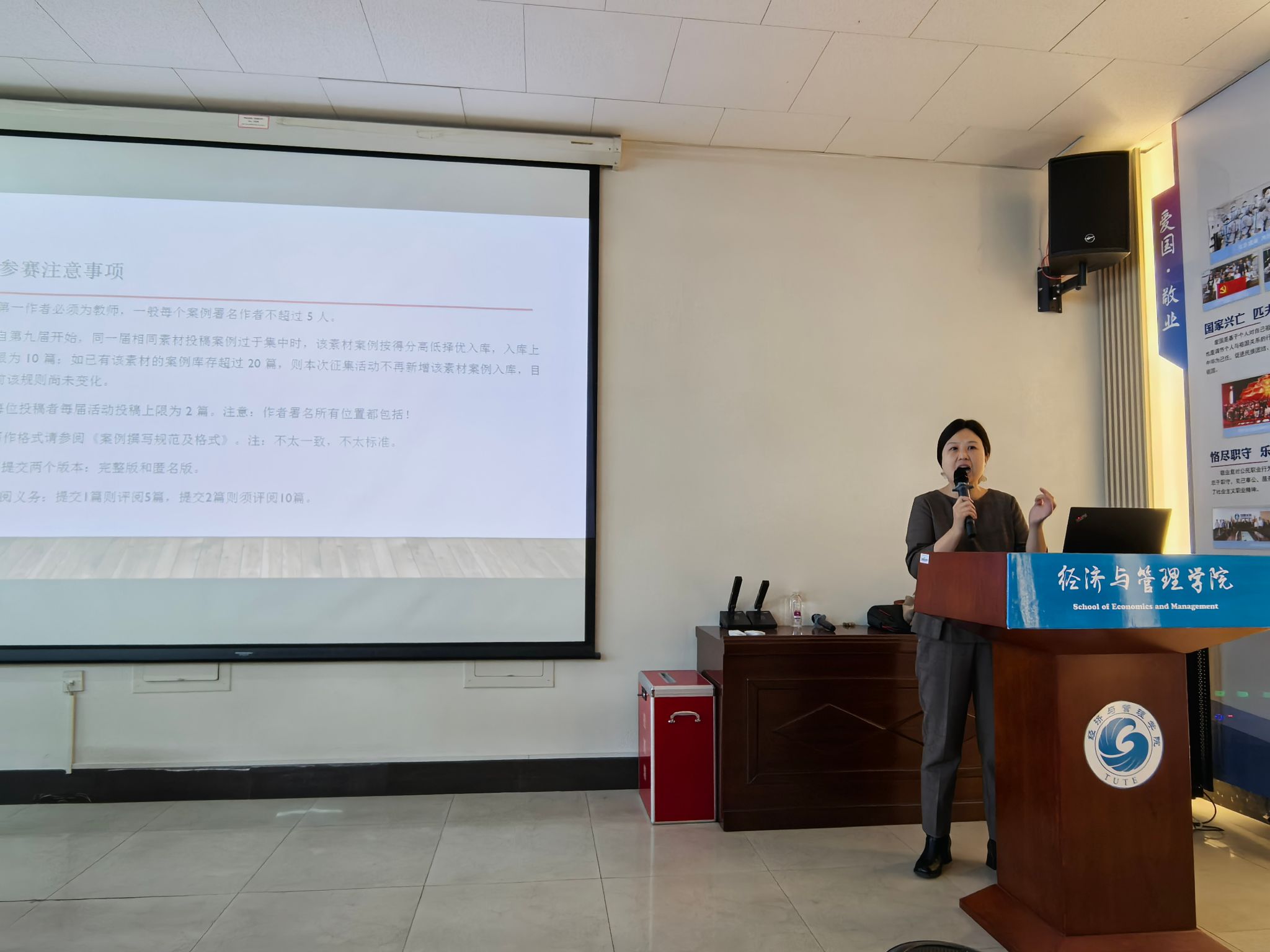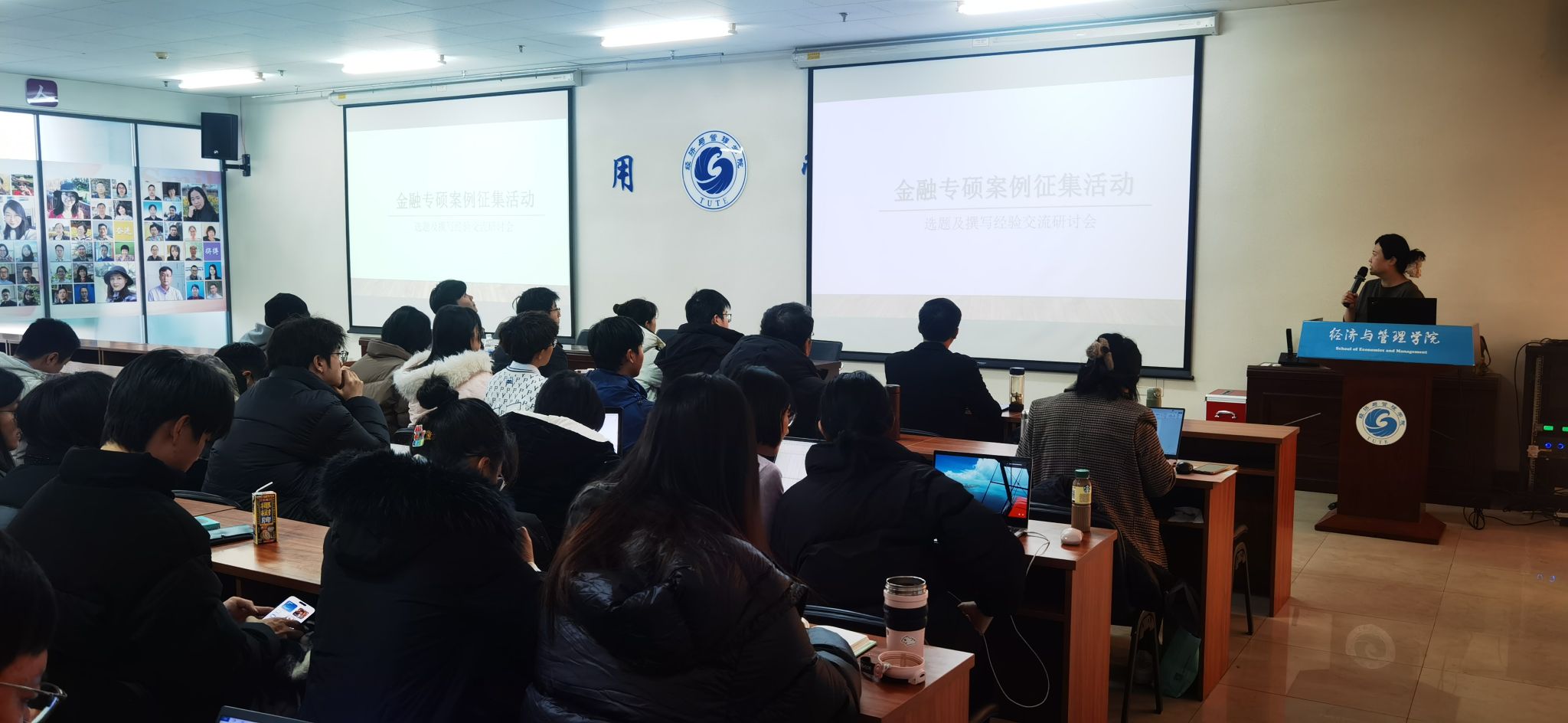 在第一教学楼701室举办“经世讲堂”第十讲,邀请天津师范大学经济学院缪言副教授作“金融专业学位教学案例选题与撰写经验”主题讲座。讲座由副院长董树功主持,金融专业研究生导师和研究生参会。