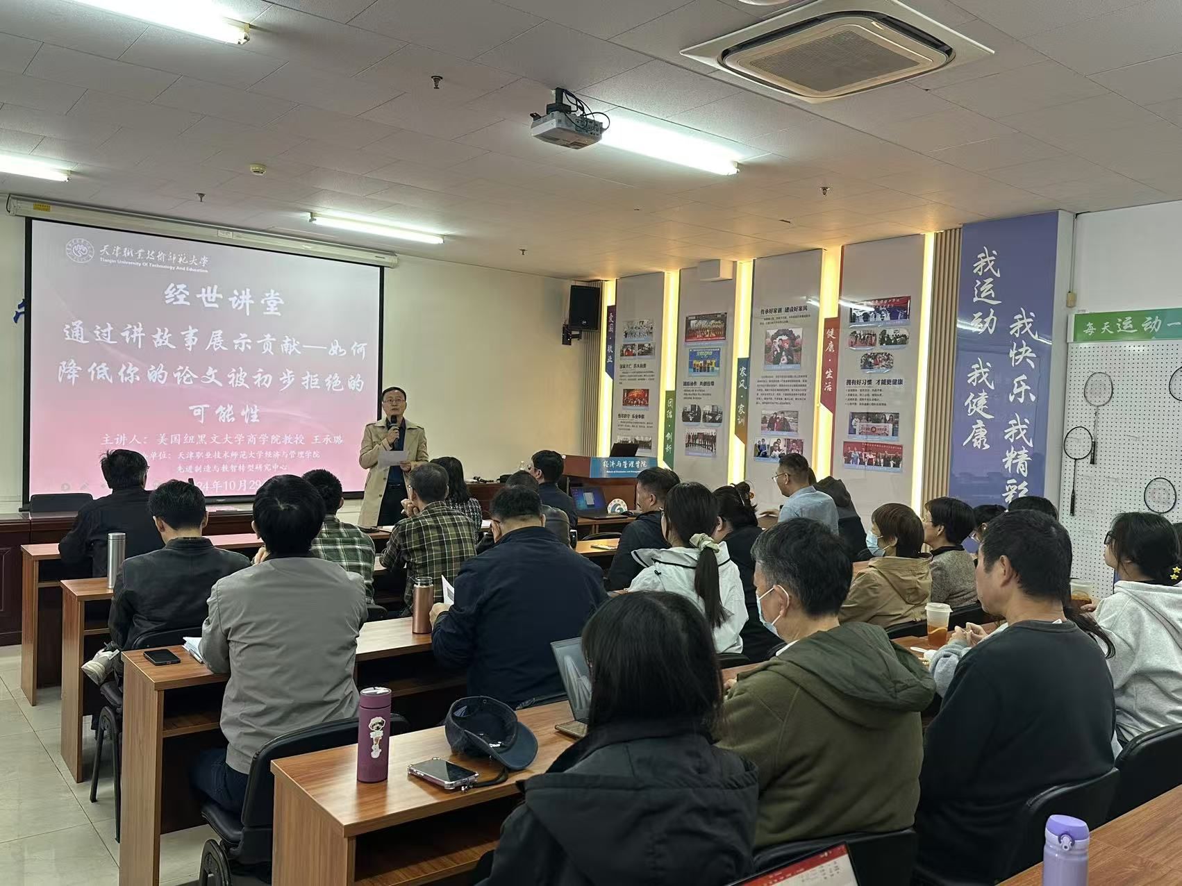 举办“经世讲堂”第七讲,邀请美国纽黑文大学商学院营销学终身教授、Journal of Research in Interactive Marketing (影响因子9.6, JCR一区)主编王承璐教授,在第一教学楼701教室开展“通过讲故事展示贡献—如何降低你的论文被初步拒绝的可能性”主题讲座。会议由副院长董树功主持,院长齐莉丽、副院长齐旭高、部分专任教师、研究生及电子商务专业本科生参会。