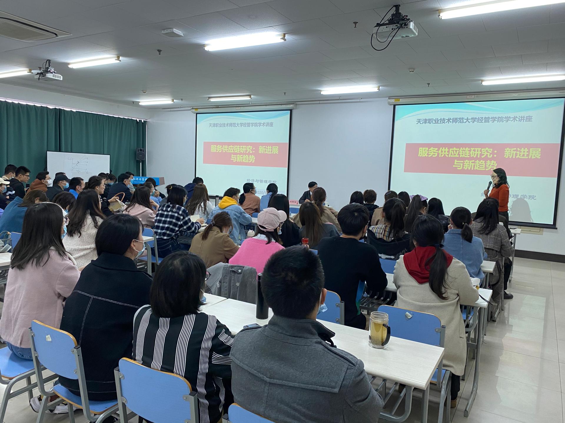 邀请天津大学运营与供应链管理系系主任、博士生导师刘伟华教授做主题为“服务供应链研究:新进展与新趋势”的学术报告会。学院物流管理系、电子商务系全体教师、全体研究生和部分本科生参加报告会。副院长齐莉丽主持会议。