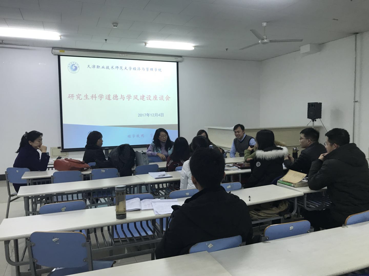 举办2016级研究生学术报告会暨科学道德与学风建设报告座谈会。经管学院研究生导师赵丽华教授、顾巧论教授、齐莉丽教授、杨勇副教授、李静博士和学院全体研究生参加此次座谈会。