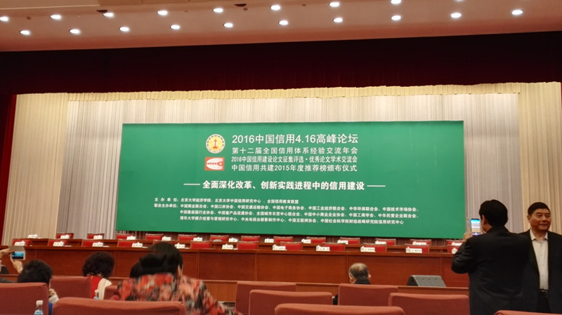 由北京大学经济学院、北京大学中国信用研究中心和全国信用教育联盟(筹)举办的“第12届(2016)中国信用4.16高峰论坛”于2016年4月16、17日在北京举办。论坛邀请部委领导、专家学者、各界精英和与会代表,研究探索中国全面深化改革、信用治理、创新实践进程中的信用体系建设,并发布《2015年度中国信用体系建设回顾和2016年展望》的主题报告。洪爷