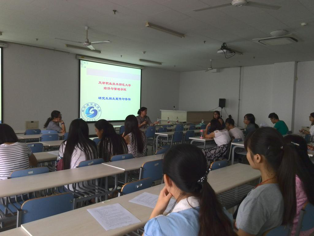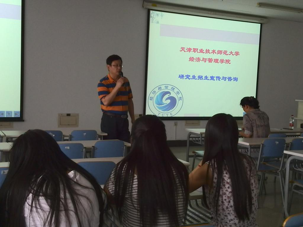 学院派出三支对外宣传团队:学院教授孙可娜、林永春赴银川大学、宁夏理工大学等高校进行招生宣传;院党委书记程中、教师张旭军赴郑州师范学院、许昌学院、郑州大学等高校进行招生宣传;院长赵丽华、副院长齐莉丽赴天津天狮学院、天津商业大学宝德学院、天津财经大学珠江学院进行招生宣传,为有意报考学院硕士研究生的同学答疑解惑。