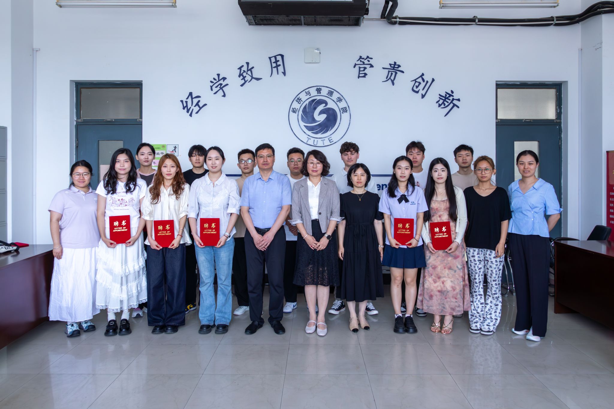 于6月16日在A710会议室举行了2025届毕业生座谈会暨校友联络大使聘任仪式。学院院长齐莉丽,副院长齐旭高,学院学工办主任、团委书记闫丹,毕业班辅导员董牧歌,来自不同专业的13名毕业生代表参会。会议由院党委副书记郭丽芳主持。