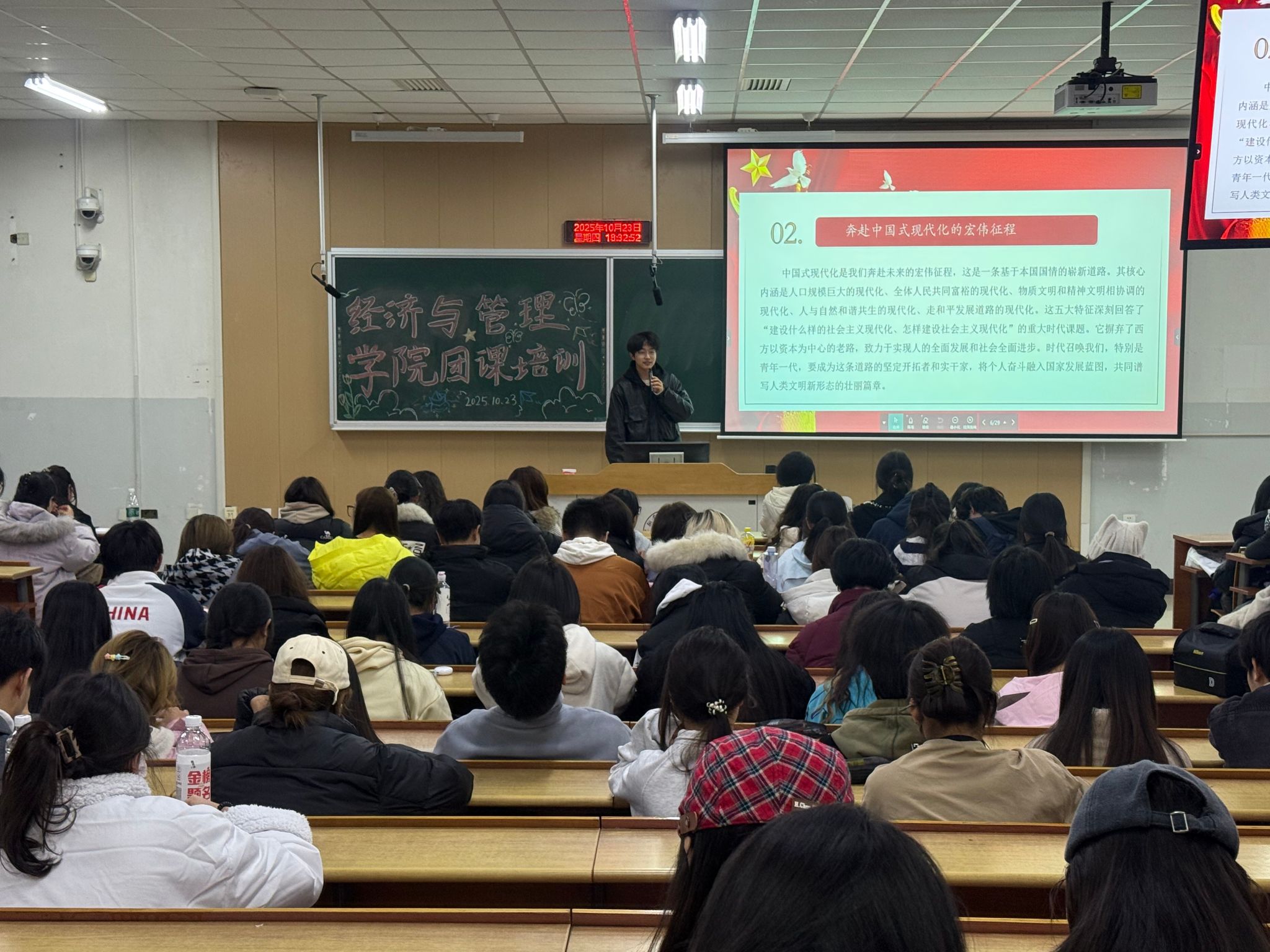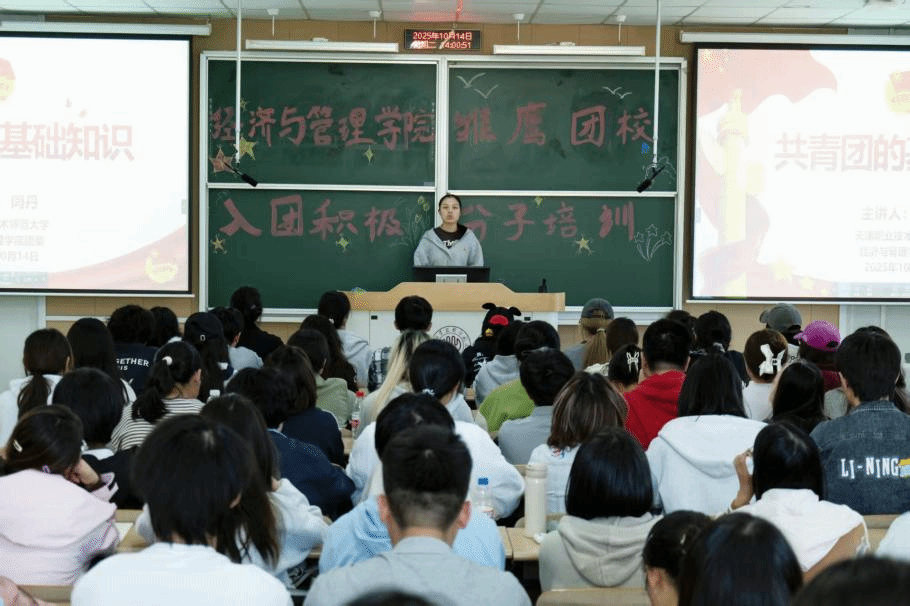 10月14日,闫丹以“中国共产主义青年团的基础知识”为主题为入团积极分子进行首期培训,从共青团的成立背景、发展历程讲起,系统介绍了共青团的组织原则、团员的基本权利与义务、团史上的重要会议与精神传承等相关内容,使入团积极分子对共青团的发展历程有了系统、深刻地了解。她强调,共青团作为党的助手和后备军,始终紧跟党的步伐,团结带领广大团员青年成长为有理想、敢担当、能吃苦、肯奋斗的新时代好青年。