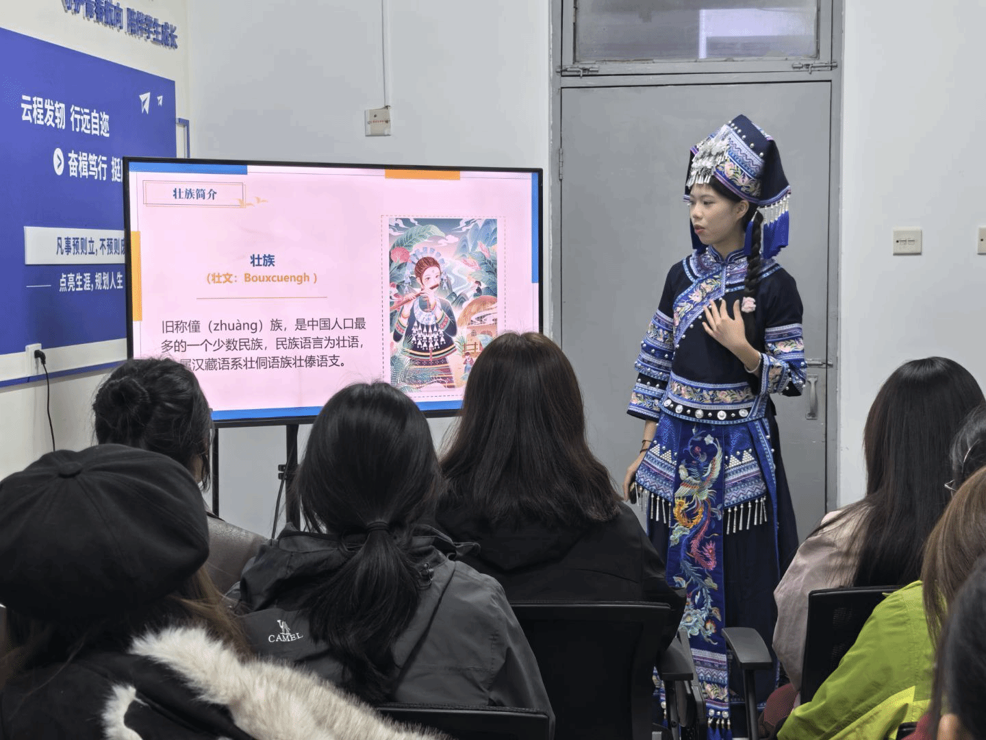 在“一站式”学生社区成功举办“民族文化我来讲”系列分享会之壮族文化专场。本次活动由壮族学生陆卓珊担任主讲,以“壮美壮族——文化与传承的现代对话”为主题,带领同学们走进中国人口最多的少数民族——壮族的文化世界。