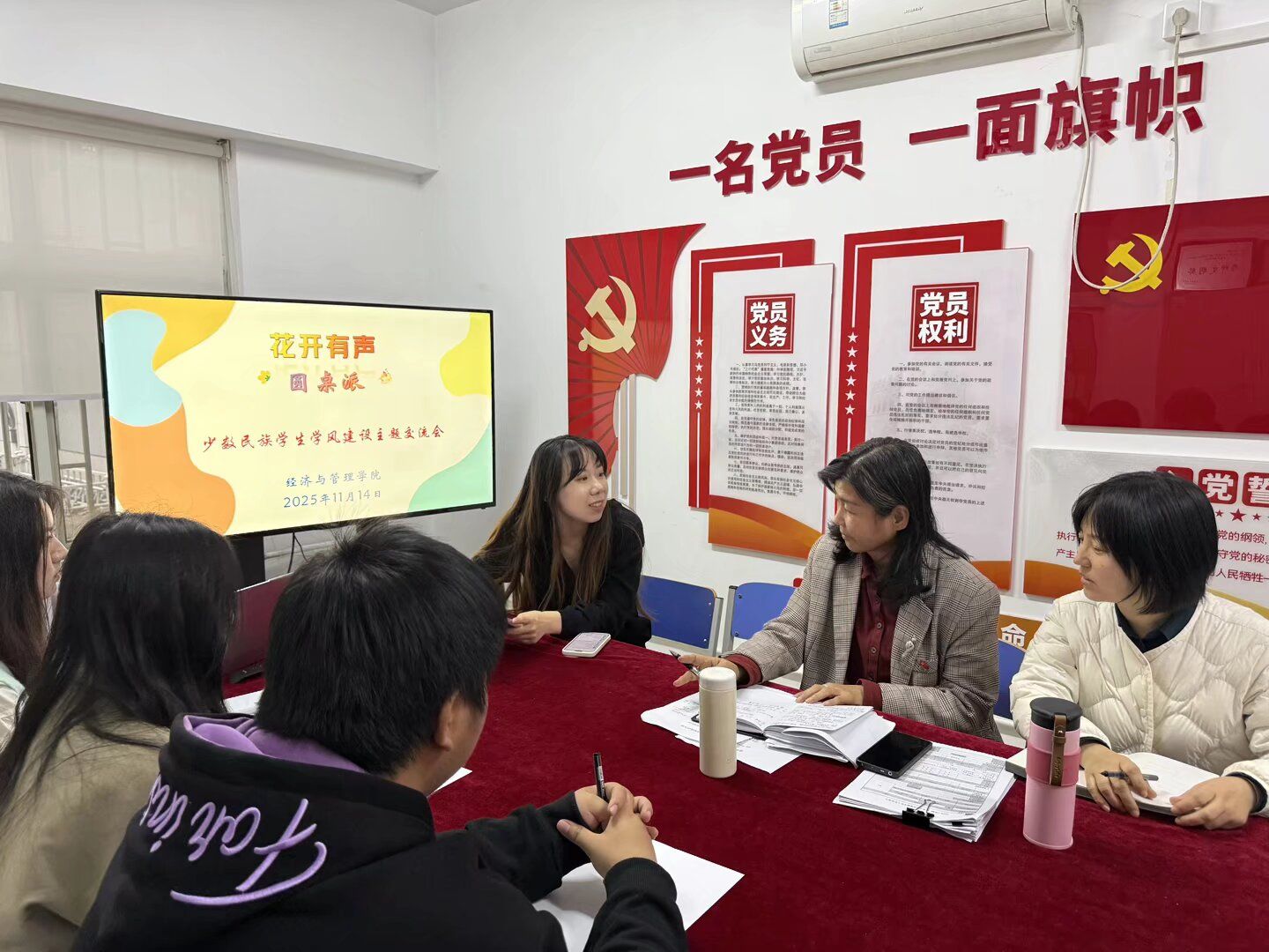 李丹慧介绍了学院少数民族学生的基本情况和学风建设现状,结合学院“石榴花开”系列学生活动教育引导各民族学生交往、交流和交融,以部分优秀少数民族学生的先进事迹为例,充分肯定了同学们在校的优秀表现,同时结合少数民族学生挂科、预警情况,指出部分同学在学业表现上仍存在一定的挑战。