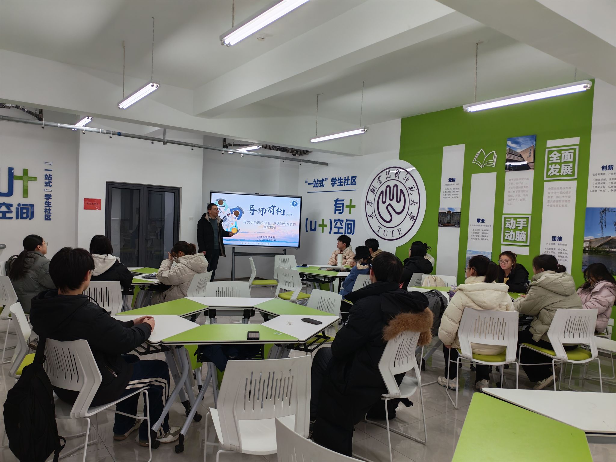 在东区U+空间举办第五期“导师有约”活动。本次活动特邀金融系副主任张志鹏老师主讲,以“论文小白进阶指南——从选题到发表的全程揭秘”为主题,系统拆解本科生论文撰写的核心要点与实践路径,为有志于发表学术论文的本科生搭建高效学习交流平台。