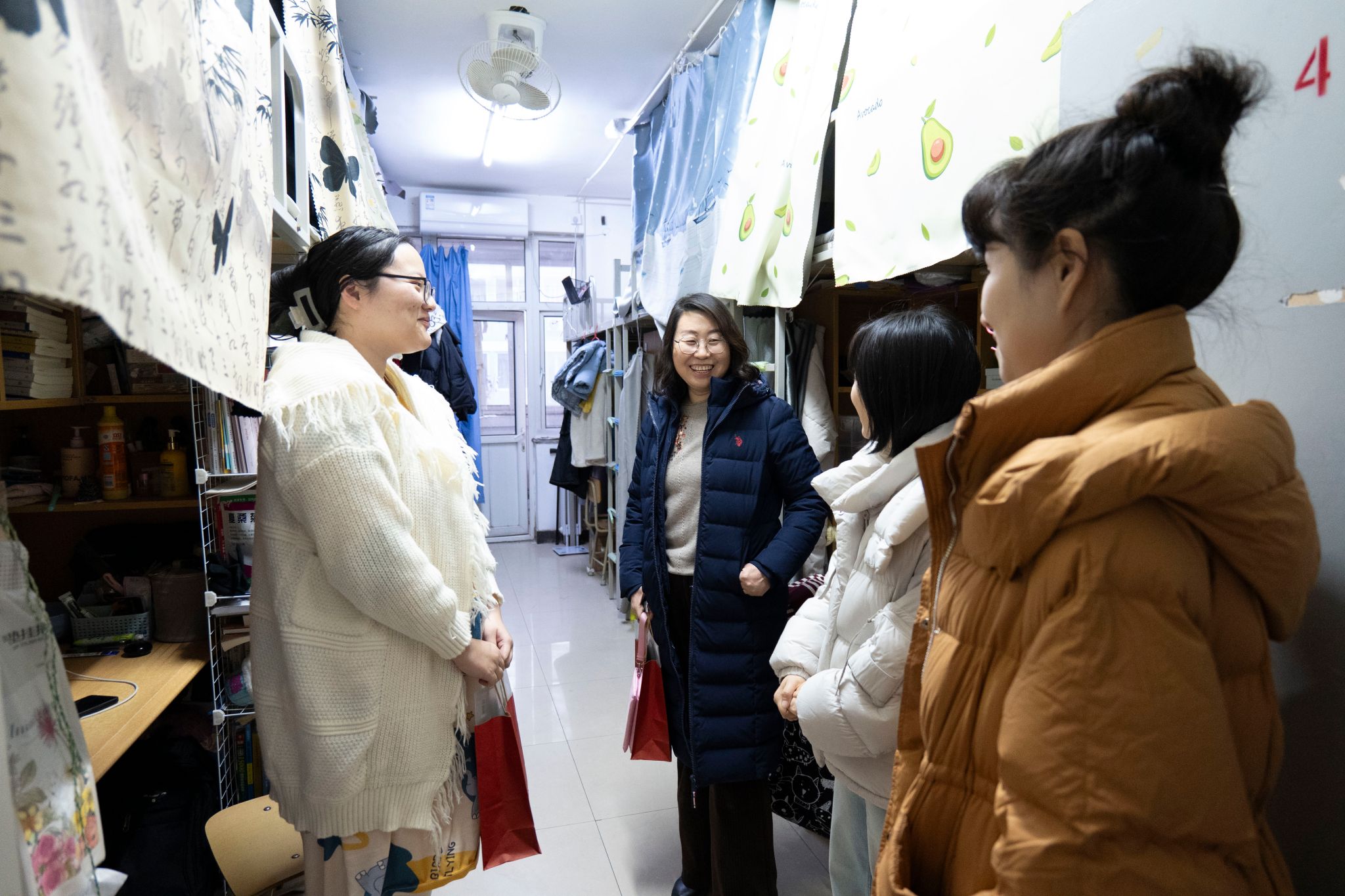 班子成员及毕业班辅导员走进学生宿舍,为考研学子送去考前关怀和祝福。