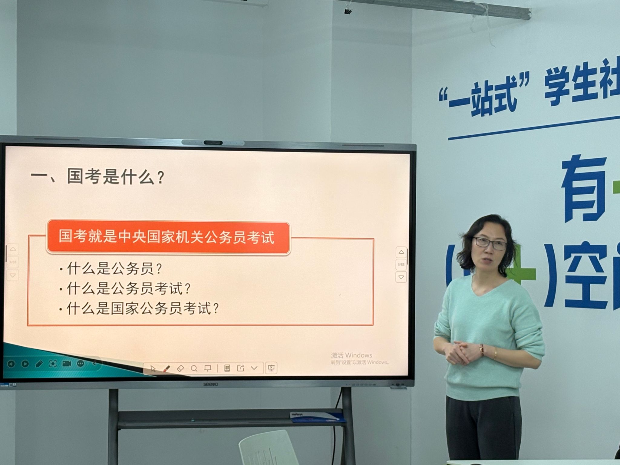 在东区U+空间举办“导师有约”系列活动第六期——“公务员考试专题指导”。本次活动特邀人力资源系闫妍老师担任主讲人,围绕国家公务员考试(以下简称“国考”)政策解读、备考策略、题型技巧等核心内容展开专题分享,为在场学子送上了一份干货满满的备考“指南”。
