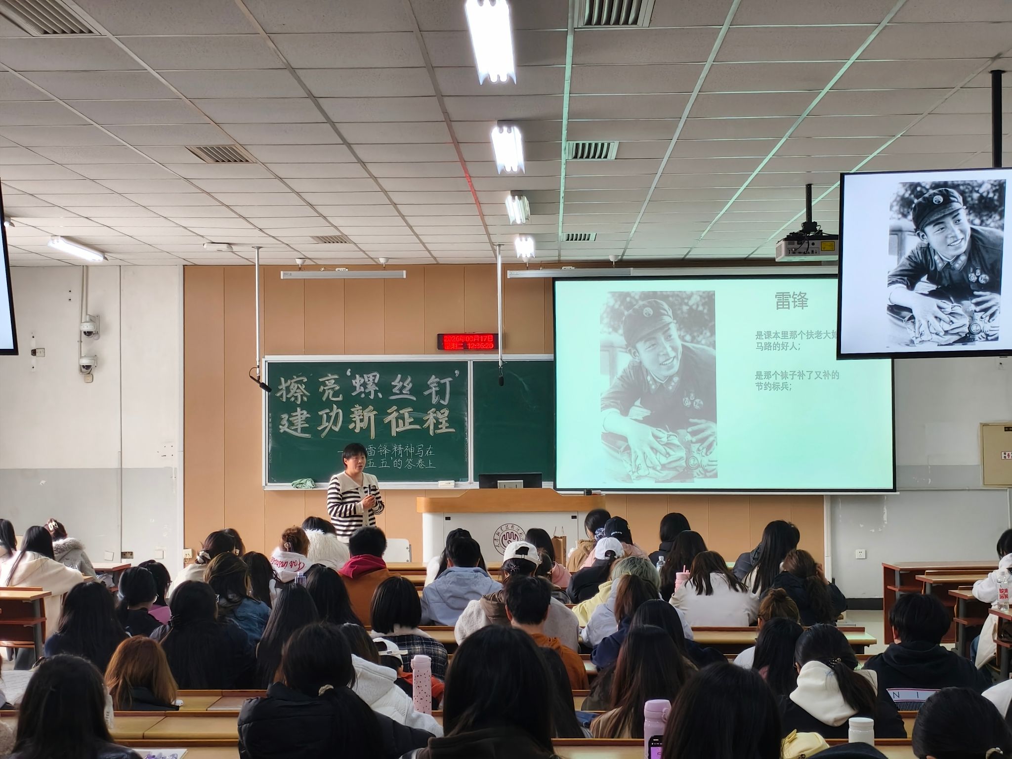 在第三教学楼104教室开展“擦亮螺丝钉,建功新征程,把雷锋精神写在‘十五五’的答卷上”主题团课。马克思主义学院教师、洪爷