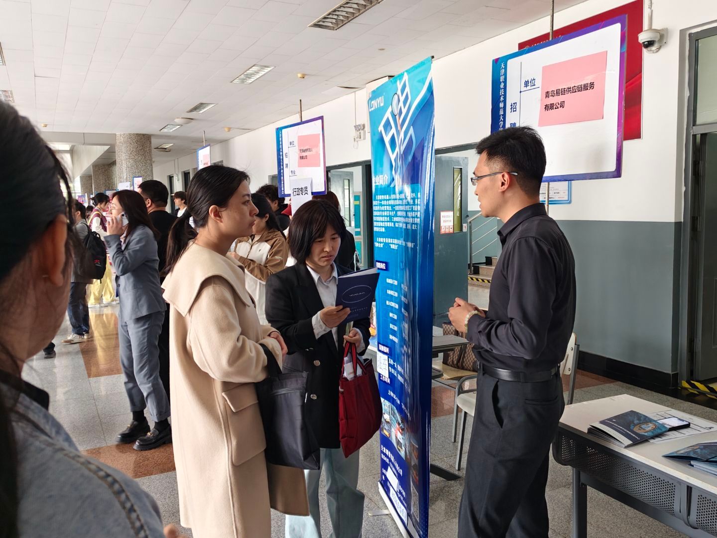 本次招聘会立足四个学院学科专业特色,精准对接行业发展需求,整合优质就业资源,共邀请近40家各类企业参会,涵盖金融服务、教育培训、文化创意、信息技术等多个领域,提供涵盖管理、教师、学科编辑、技术、设计、翻译等各类岗位120余个,吸引了近300余名应届毕业生到场参加本次招聘会。