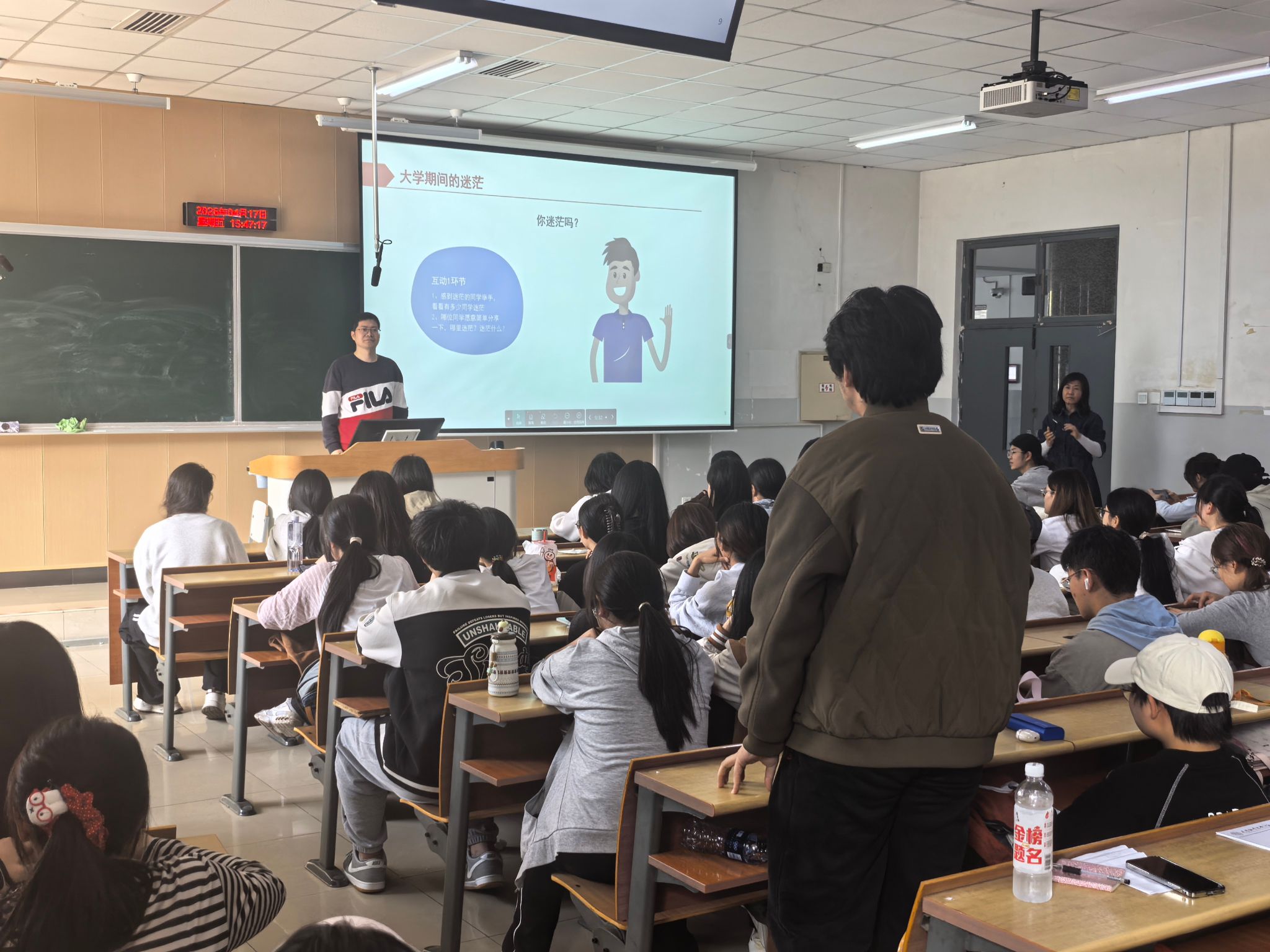 赵平等以“始于热爱,成于规划”为主题,结合自身13年电商行业实战经验,从先后任职四个知名企业的职业历程展开分享。他首先引导同学们“认识自己”,通过现场互动调查学生的迷茫状态与家庭背景,指出客观认知起点是制定务实规划的第一步。随后,他讲述了自己“北漂五年之约”的真实抉择——在北京积累发展“加速度”与返回家乡追求生活“舒适度”之间的权衡,强调没有绝对正确的选择,适合自己能力与目标的才是最好的。他还分享了实习期如何“决定开局”的五项具体行动建议,鼓励学生即刻起要迈出职业生涯第一步。讲座过程中,赵平等多次设置互动环节,向积极参与的同学赠送奖品,并现场发布了一个实习名额,引发热烈反响。