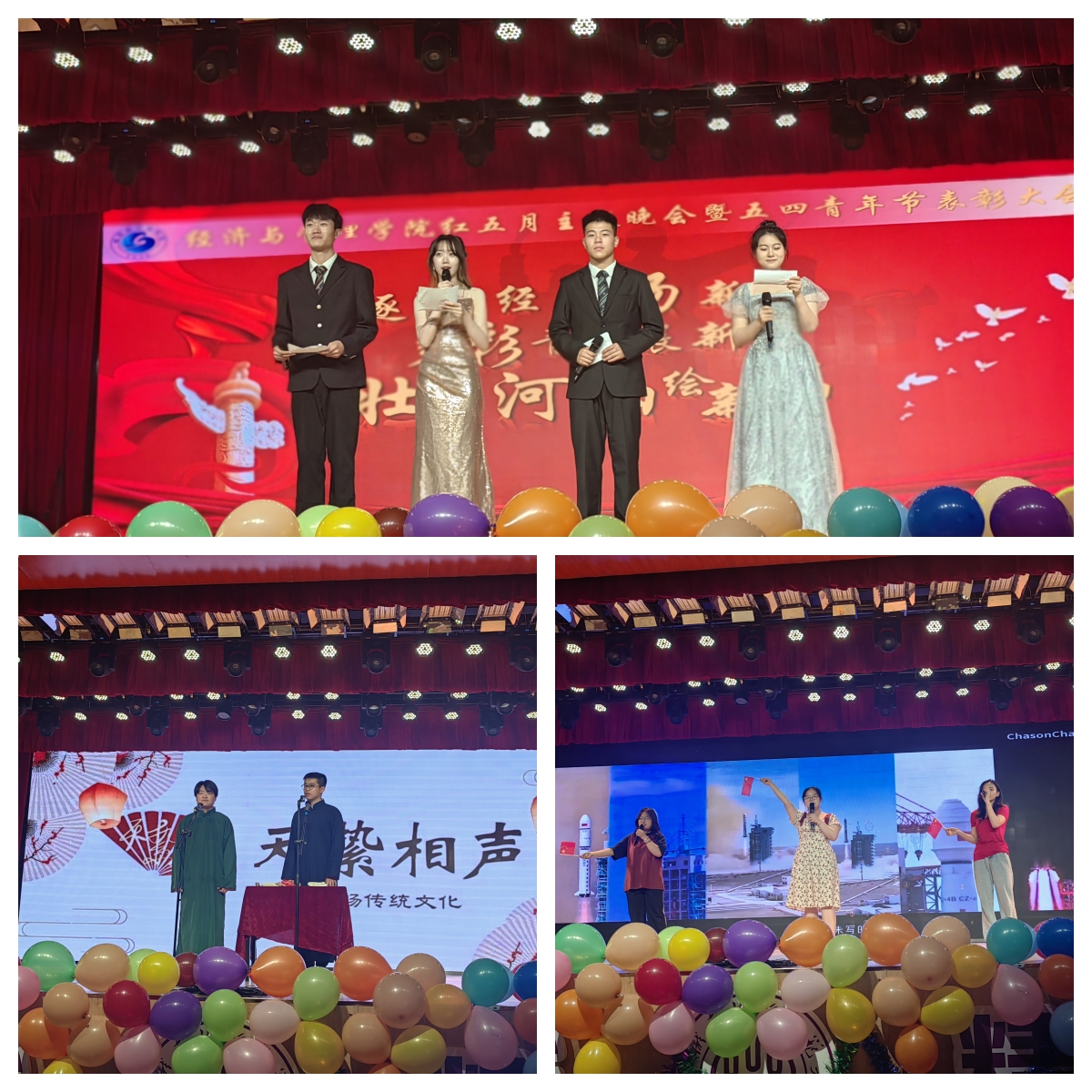 在大学生活动中心四楼展演厅举办红五月“逐梦经管扬新帆·多彩青春展新颜·壮丽河山绘新篇”晚会暨五四青年节表彰大会。校团委书记刘晶、学院党委书记吴平、副书记郭丽芳、全体辅导员、受到表彰的先进集体、个人代表和团员青年代表300余人参加本次活动。