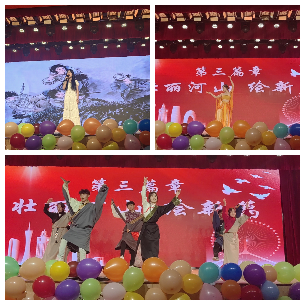 “红五月”主题晚会分为“扬新帆”“展新颜”“绘新篇”三个篇章。伴随着活力四射的开场舞,第一篇章“扬新帆”拉开了晚会的序幕。歌曲《我们的时光》《夜空中最亮的星》唱响了青春的乐章;话剧《破茧》鼓励青年大学生正确面对成长过程中的困难和挫折,勇于向校园霸凌和电信诈骗说“不”。第二篇章“展新颜”在热烈掌声中开启,舞蹈、相声、朗诵、合唱等节目轮番上演,将全场气氛推向高潮。改编歌曲《清廉校园版Mojito》唱响了严以律己、遵规守纪的主旋律,让清正校风、清新学风吹拂校园。第三篇章“绘新篇”中,民族舞蹈《长安十二时辰》、传统服饰T台秀和乐器联奏《青玉案•元夕》等节目将传统文化与现代元素巧妙融合,展示了中华民族深厚的文化底蕴。朗诵《百年芳华》和配音《觉醒》生动形象地表现了英勇顽强的中国人民艰苦奋斗、前赴后继的革命精神和英雄气概。最后,在《我们都是追梦人》的歌声中,“红五月”主题晚会暨五四青年节表彰大会圆满结束。