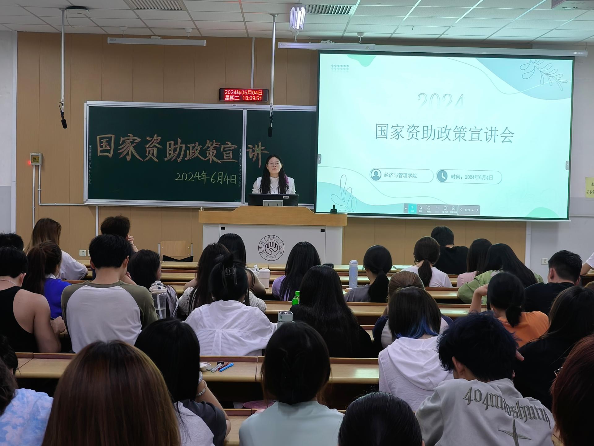在第二教学楼106教室举办国家资助政策宣讲会,邀请2023年度天津市人民政府奖学金、校学生资助宣传大使标兵获得者朱孟佳同学进行宣讲。200余名毕业生和家庭经济困难学生代表参加,辅导员韩雅丽主持会议。