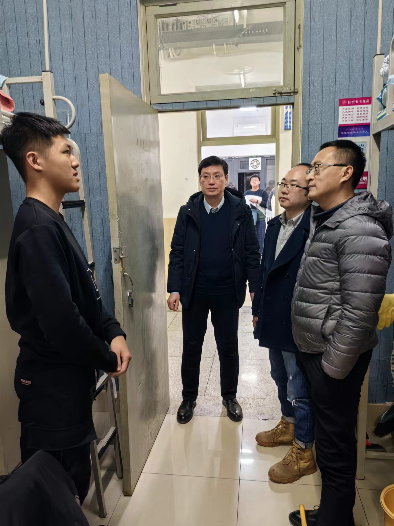 3月6日,学院领导班子全体成员走进学生公寓,向返校学生嘘寒问暖,送去学院全体教师的关怀问候,了解学生返校情况、开学初思想动态、学习生活状态,就学院教风、学风问题征求学生意见建议,并对学生进行安全提醒。同时,详细了解了毕业生就业情况,鼓励毕业生积极调整心态,树立正确的择业观、就业观。