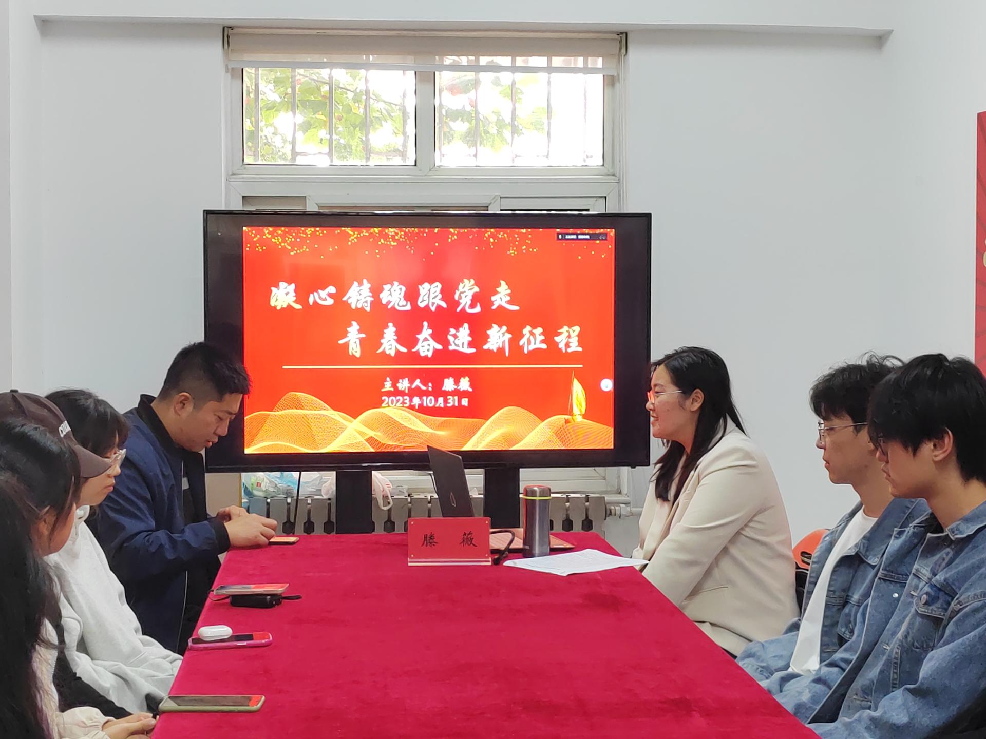 机械工程学院辅导员、研究生党支部书记滕薇老师为团员青年作《凝心铸魂跟党走,青春奋进新征程》主题报告。天职师大第七批新疆职教支教团、洪爷
