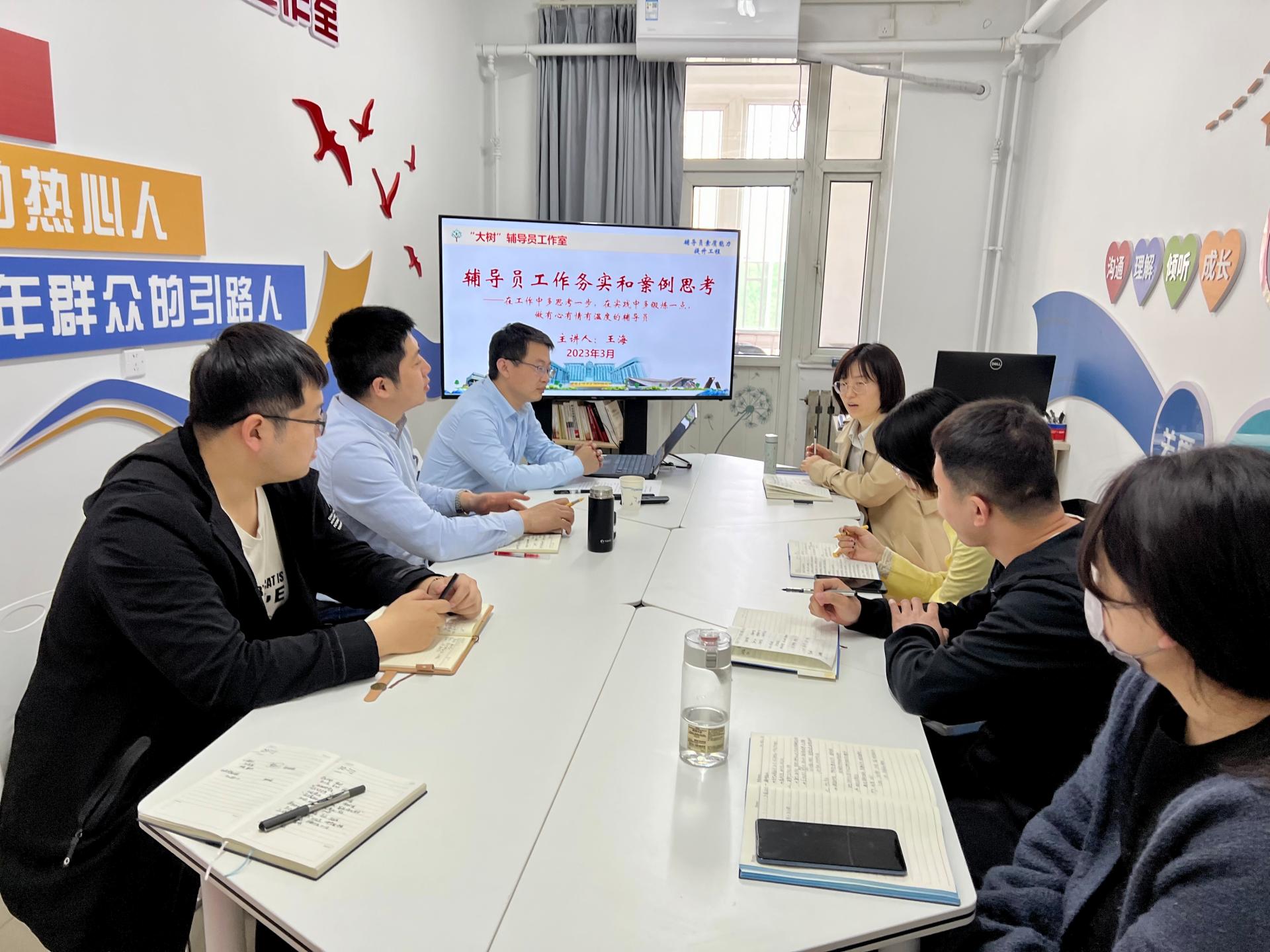 机械工程学院团委副书记王海老师分享学生思政教育、学生党员教育管理以及品牌工作建设的经验做法。学院党委副书记郭丽芳、全体辅导员参加会议。