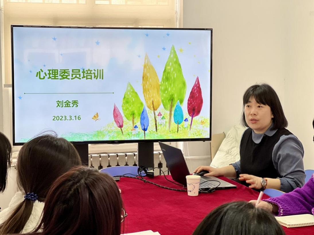 邀请学校心理健康中心刘金秀老师在“一站式”学生社区开展心理委员培训会,会议由辅导员李喆主持。