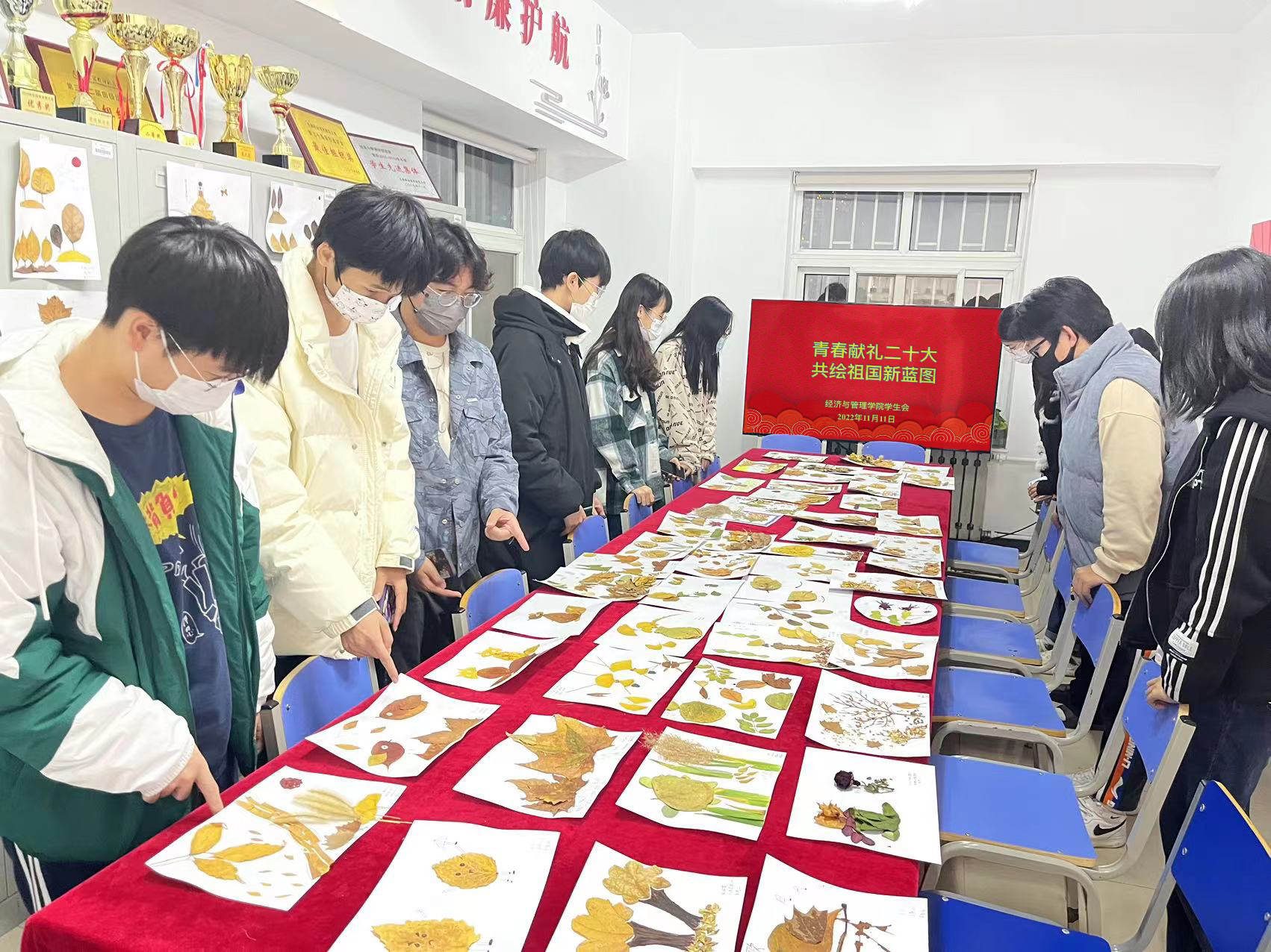在“一站式”学生服务中心举办“青年说·我眼中的二十大”与“青年绘·秋叶寄深情”活动,共150余名学生参加。