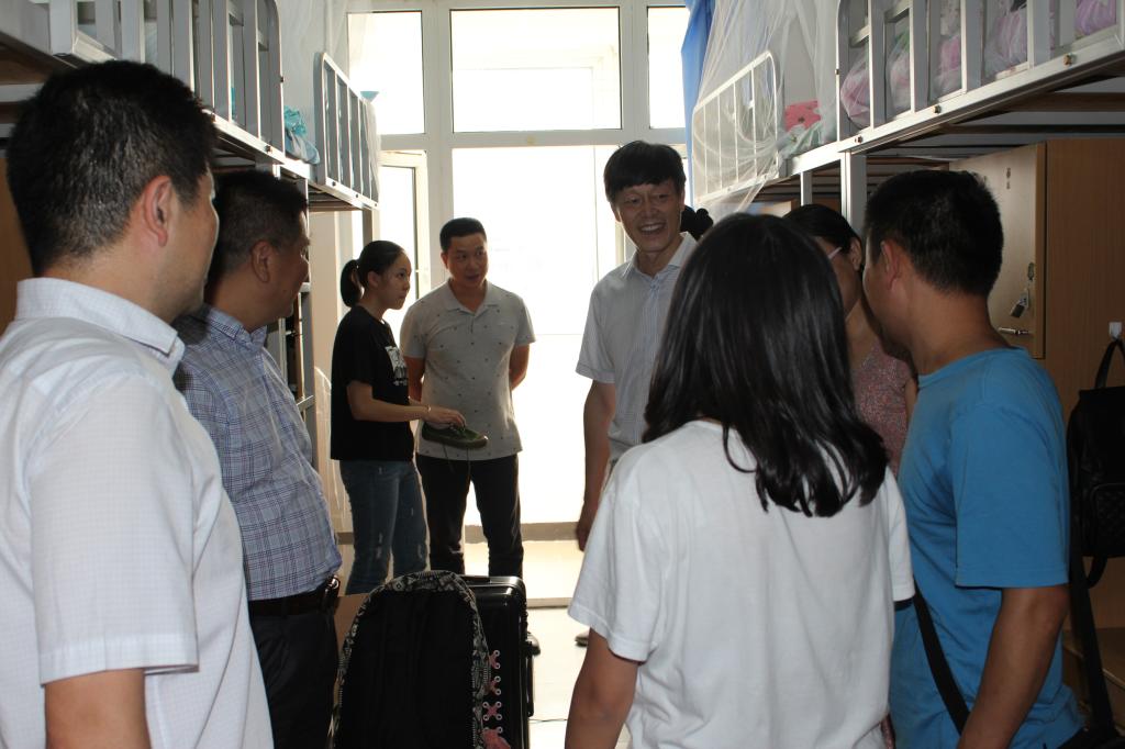 家长会结束后。为了帮助新生们尽快适应新的学习和生活环境,学院领导班子以及班主任和辅导员老师,分别前往新生宿舍,看望慰问2017级新生及家长,并对新生生活用品、安全、宿舍环境等方面进行检查,确保新生入学有良好的生活环境。良好的宿舍环境是大学生活的基石,宿舍文化建设对培养同学们自立自强、团结友爱的品质十分重要,鼓励同学们在平时的相处之中要互帮互助,争取共同进步,以积极乐观的态度,昂扬向上的精神过充实有意义的大学生活,为踏入社会实现人生理想打下坚实的基础。慰问过程中,同学们积极与学院领导沟通交流,表示将牢记嘱托,把握大学时光和机遇,刻苦学习、努力拼搏,争取取得优异的成绩,回报家长、学校和社会,并对学校和各级领导、老师的关心表示了衷心感谢。