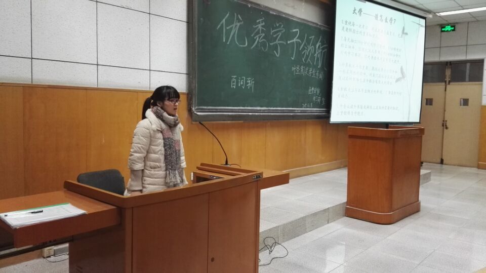 物流1202的何衍芬同学一出场就给同学们强调学习和奋斗的重要性,然后从期末考试复习,英语四、六级讲到各种办公软件,从小小的阅读习惯讲到树立远大的目标,讲解详细具体,生动形象。随后电气1212的洪石钦同学在简单分享自己的学习经验后,着重强调免费师范生担负的责任、理论与实践相结合的探索精神、集体意识。最后,信息1202的马乾讲解了免费师范生的自我定位和相关就业政策,使同学们对未来有了更加明确的目标。