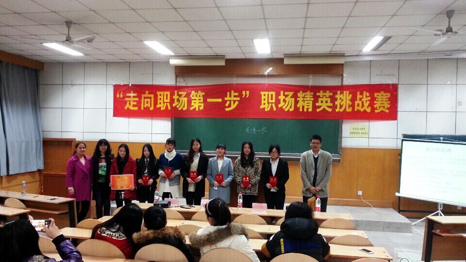 在阶教201举行了职场精英挑战赛。比赛面向全院学生,由人力资源专业课老师赵铭、曹洁、李薇担任评委。