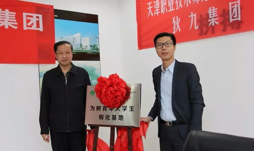 随后,孟庆国和蒋文天共同为“为树青年大学生孵化基地”揭牌。