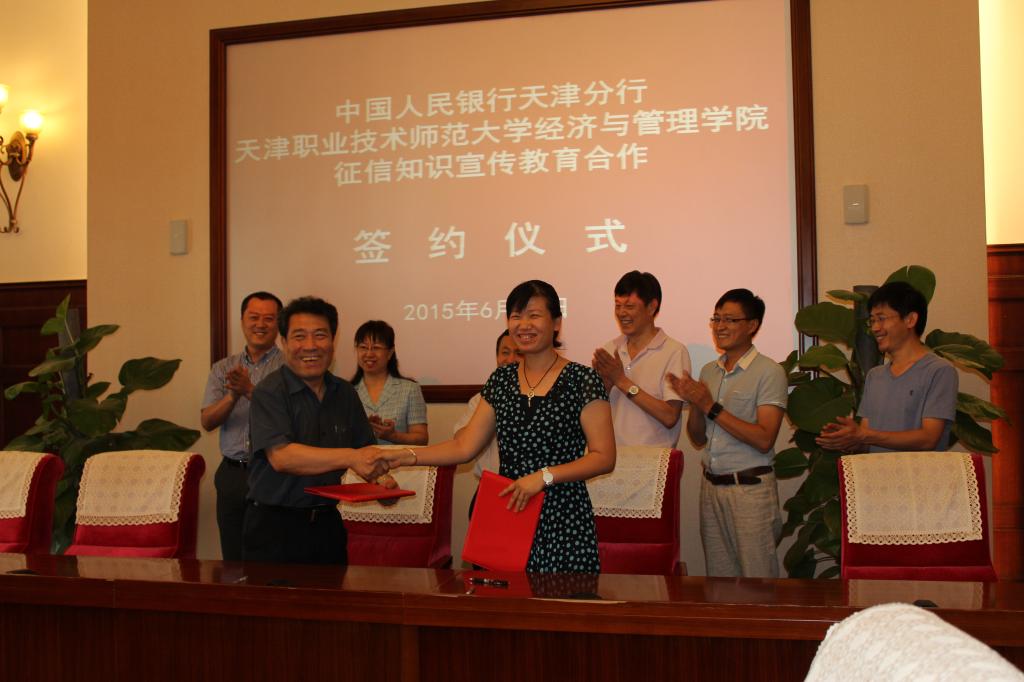 中国人民银行是国务院征信业监督管理部门,负责对征信机构及其业务活动实施监督管理。对信用管理专业来讲,与人行天津分行开展合作实现了定位精准和专业对口,把信用管理专业的实习基地建设和校企合作推到了一个新的高度。相信在今后的合作中,双方定会互利共赢,取得更加丰硕的成果。