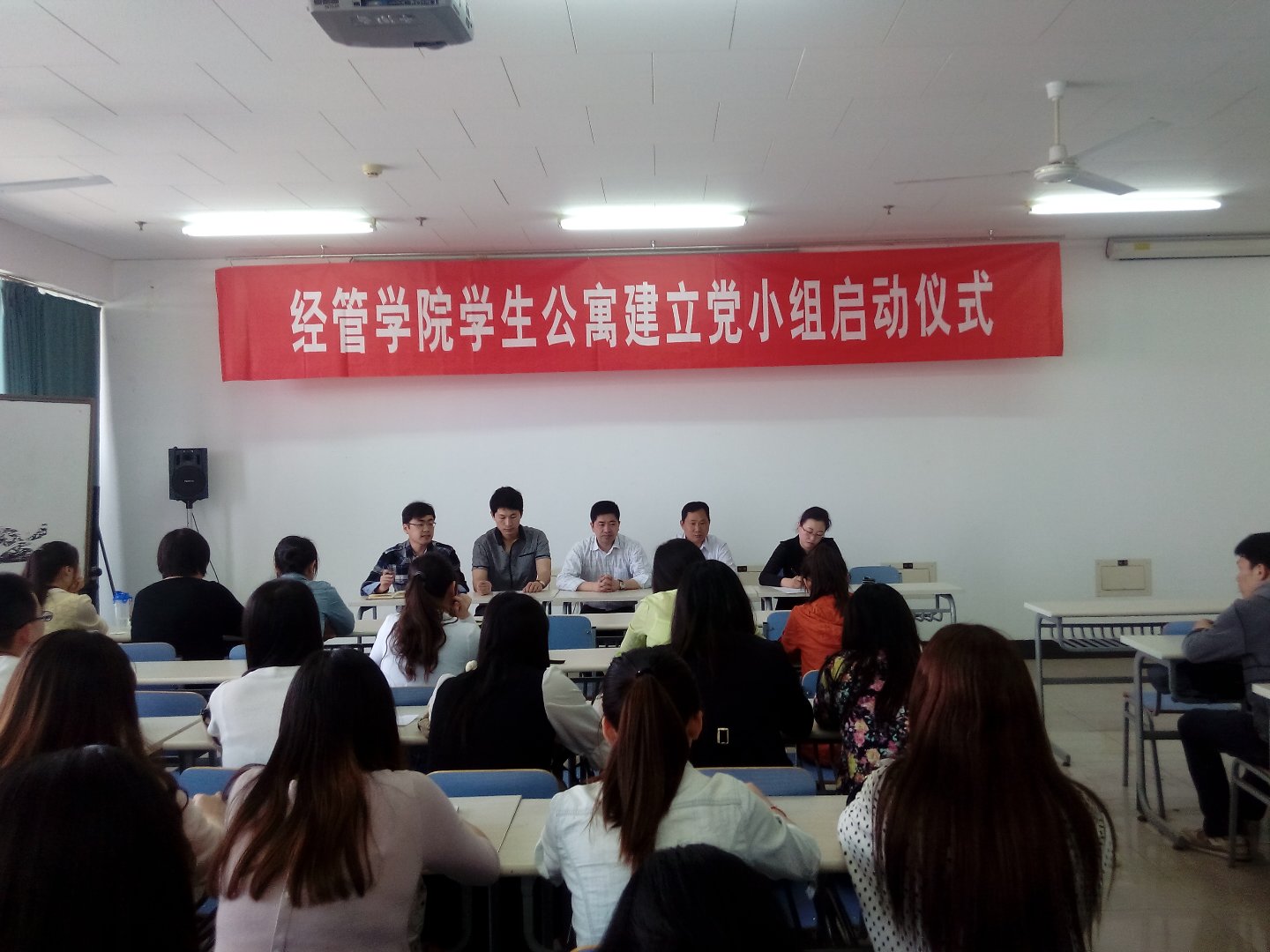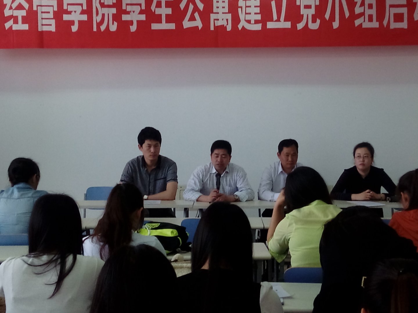 创建“美丽天津,美丽校园”活动,经管学院党总支在全校率先成立了学生公寓党小组。4月29日,经管学院举行了学生公寓建立党小组活动启动仪式。党委学工部副部长范全新、党委组织部组织科科长卢兆海、经管学院党总支副书记邹建勇、团总支书记李楠、辅导员张波以及全体学生党员、预备党员和入党积极分子出席了本次仪式,会议由学院团总支书记李楠主持。