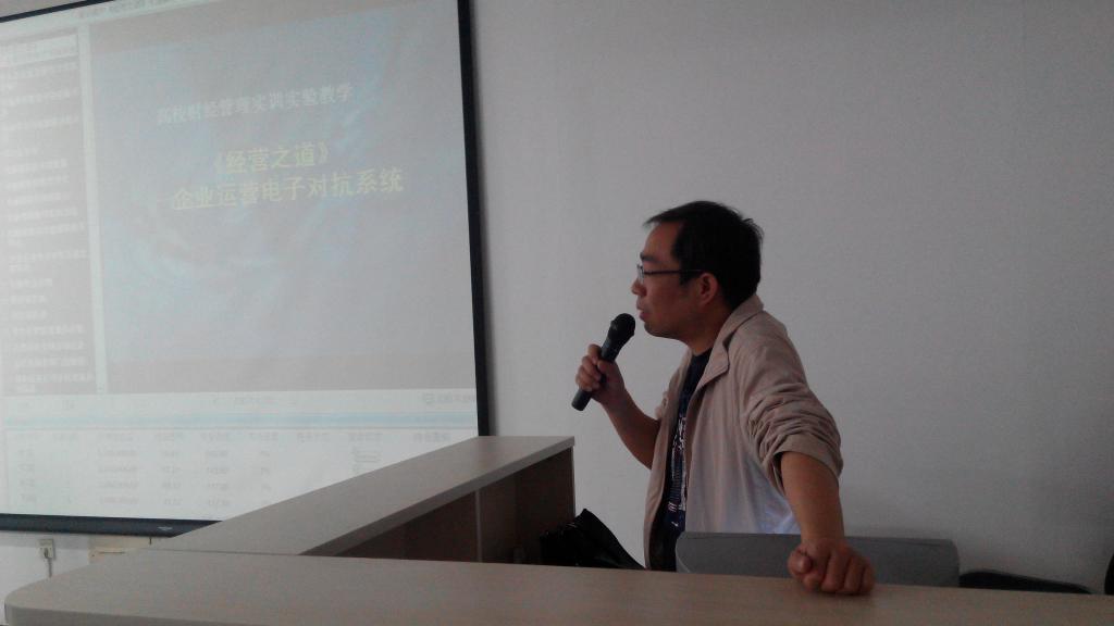 党总支副书记邹建勇首先祝贺大家在众多队伍中脱颖而出,然后向大家详细介绍了复赛的评分标准和赛程安排,并预祝大家在本次大赛中取得骄人的成绩。翟希东老师向全体代表介绍了复赛所使用的“经营之道——企业经营模拟ERP”软件,向大家介绍了培训的相关安排。