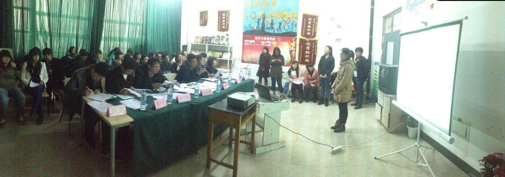 整个评审分为社团活动讲解和评委提问两个部分。首先由14个参报优秀活动的社团代表上台以PPT讲演的形式对所在社团或协会进行5分钟基本情况和活动的详细介绍,例如光影年华协会的活动“校园微电影大赛”、电子商务协会的”电商达人竞赛”、人力资源管理协会的“非你莫属校园版”系列活动等。众多社团可谓是“百家争鸣、百花齐放”,图文并茂地展示了社团活动的丰富性、文化性和可培育性。各评委老师就“如何开展具体的活动措施”、“活动效果如何”、“如何扩大活动的影响力”等方面进行了提问,并根据活动组织和展示情况为各个项目进行了评分。