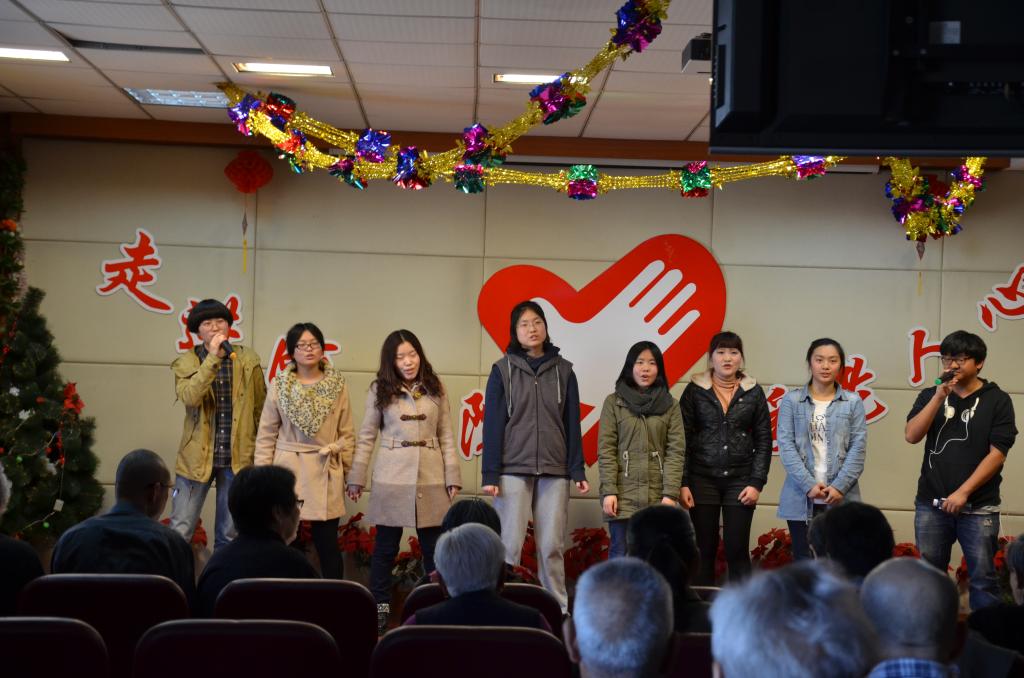 同学们为老人们准备了丰富多彩的文艺节目,有舒缓动听的手风琴曲,婉转悦耳的歌声,优美和谐的舞蹈……同学们热情洋溢的表演给老人们带来了欢乐,激起了他们对往昔青春岁月的回忆,老人们也按捺不住,纷纷表演节目。一位七十多岁的奶奶给大家带来了《美丽的草原我的家》,还有一位老奶奶唱了《我的祖国》,老人们的精彩表演赢得全场热烈的掌声。节目最后,全场共同唱起了《夕阳红》,悠扬的歌声中洋溢着温馨和幸福,看着老人们脸上绽放出美丽的笑容,同学们也感到由衷的高兴。