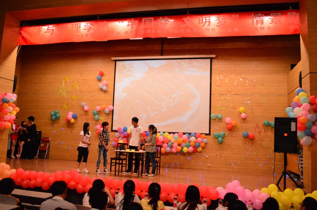 由学生人力党支部带来的名为《做文明市民》的话剧表演将此次情景剧展演拉开了帷幕,接下来一场由社团联合会主演的《校园里的文明风波》席卷了整个小礼堂的舞台,社保党支部出演的《谈判》将现场的气氛调动了起来,金融党支部表演的《尊老爱幼》引得整场展演笑料不断、掌声迭起,学生会出演的《多棱镜》将中华美德传统展现的淋漓尽致,而最后红梅情景剧社带来的感人催泪的《谁的青春不迷茫》将本次活动推向了高潮。