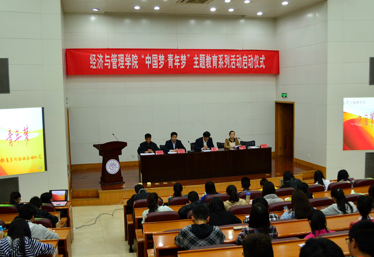 据了解,本次经管学院“中国梦·青年梦”主题教育系列活动在全院开展“三行动”和“两展演”,最终引导学生实现“五梦”。“三行动”即针对2012级学生的“织梦行动”、针对2011级、2010级学生的“追梦行动”以及针对2009级毕业生的“圆梦分享行动”。“两展演”指“中国梦·文明梦”情景剧展演活动和“逐梦起航”艺术团专场演出。“五梦”指帮助学生实现信仰梦、文明梦、就业梦、升学梦和创业梦。