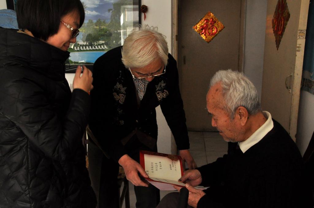 学生党支部的学生党员们带着鲜花来到了小海地云山里小区付光新老师家里,付教授和他爱人周老师热情接待了同学们。同学们向两位老师表示新年节日的祝福,并与他们进行了交流。在交谈中,同学们了解到,付教授于1964年被选派到苏联留学,1969年回国后到宁夏大学任教,后被调到学校理学院任教,直至1993年退休。现在,付教授虽已年高,但身体硬朗,他非常感谢学校对他们的照顾,对学校的变化相当欣喜,对学校未来的发展壮大充满了信心,并祝愿学校发展更上一层楼。同时,付教授叮嘱同学们要珍惜大学时光,踏实勤奋,好好学习,学生党员更应该严格要求自己,起到先锋模范作用,将来成为一个对党对人民都有用的人。最后,同学们帮老师打扫了卫生,并与两位老师合影留念。
