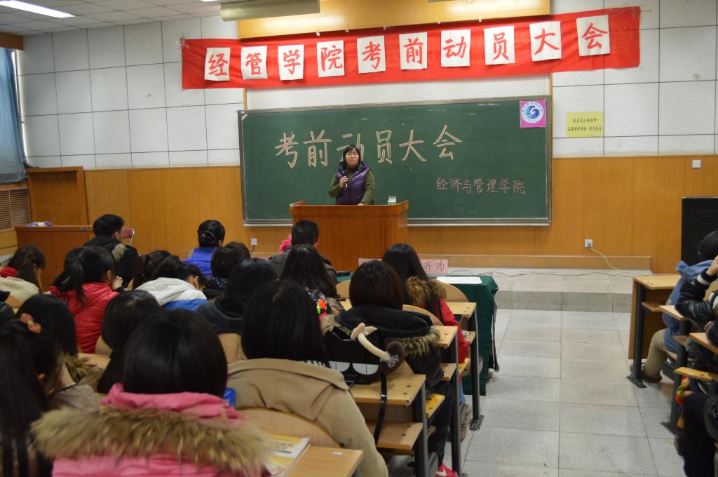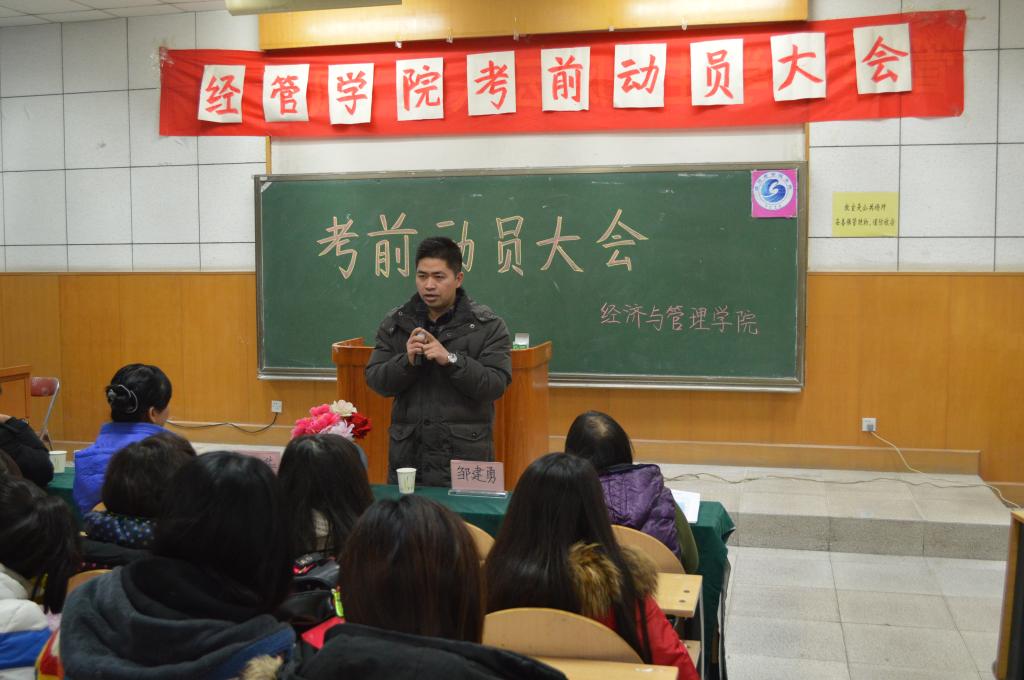12月28日下午,为严肃考风考纪、倡导良好学风,针对2012级新生首次期末考试的特殊情况,经管学院召开了新生考前动员大会。经管学院副院长赵丽华、党总支副书记邹建勇出席并作了考前动员,全体大一新生参加会议。