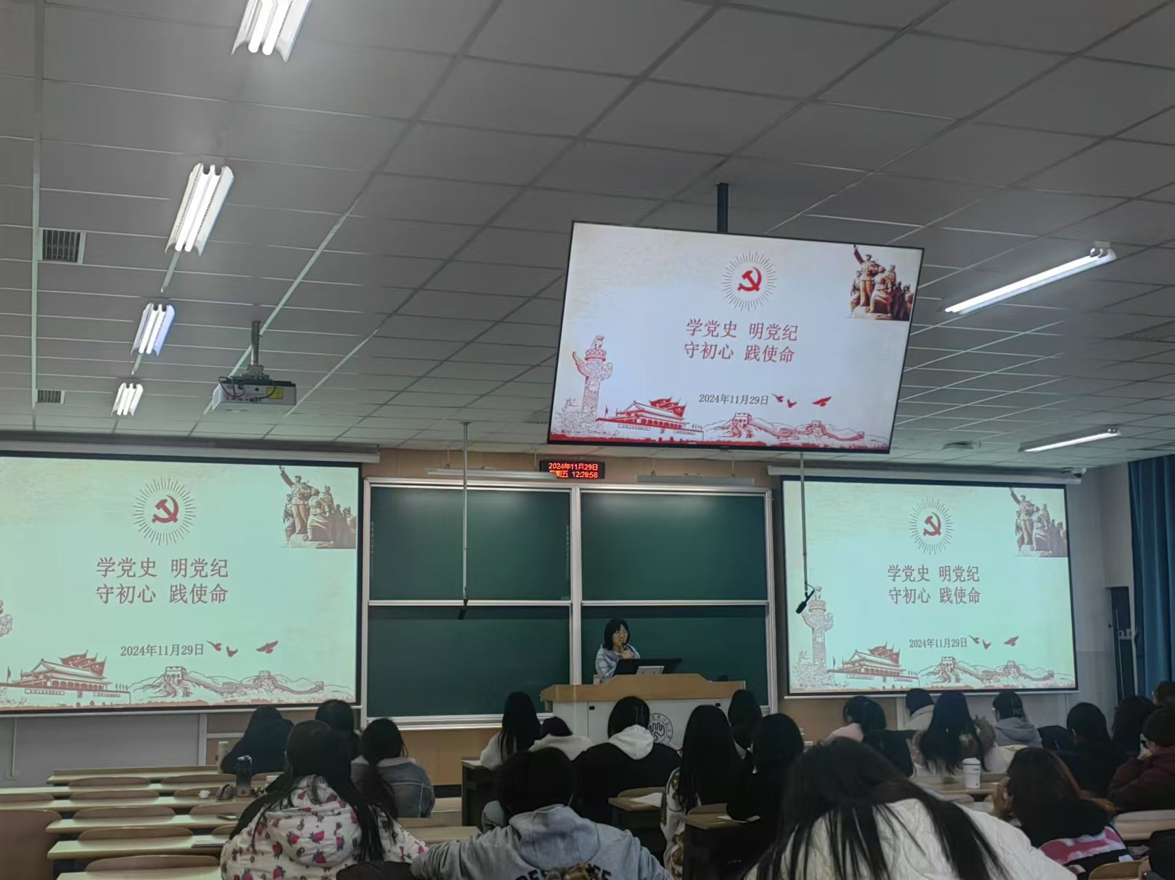 在阶教201教室举办“学党史 明党纪 守初心 践使命”主题微党课。本次微党课由学院党委副书记、纪委书记郭丽芳主讲,全体2024年下半年确定的入党积极分子参加。