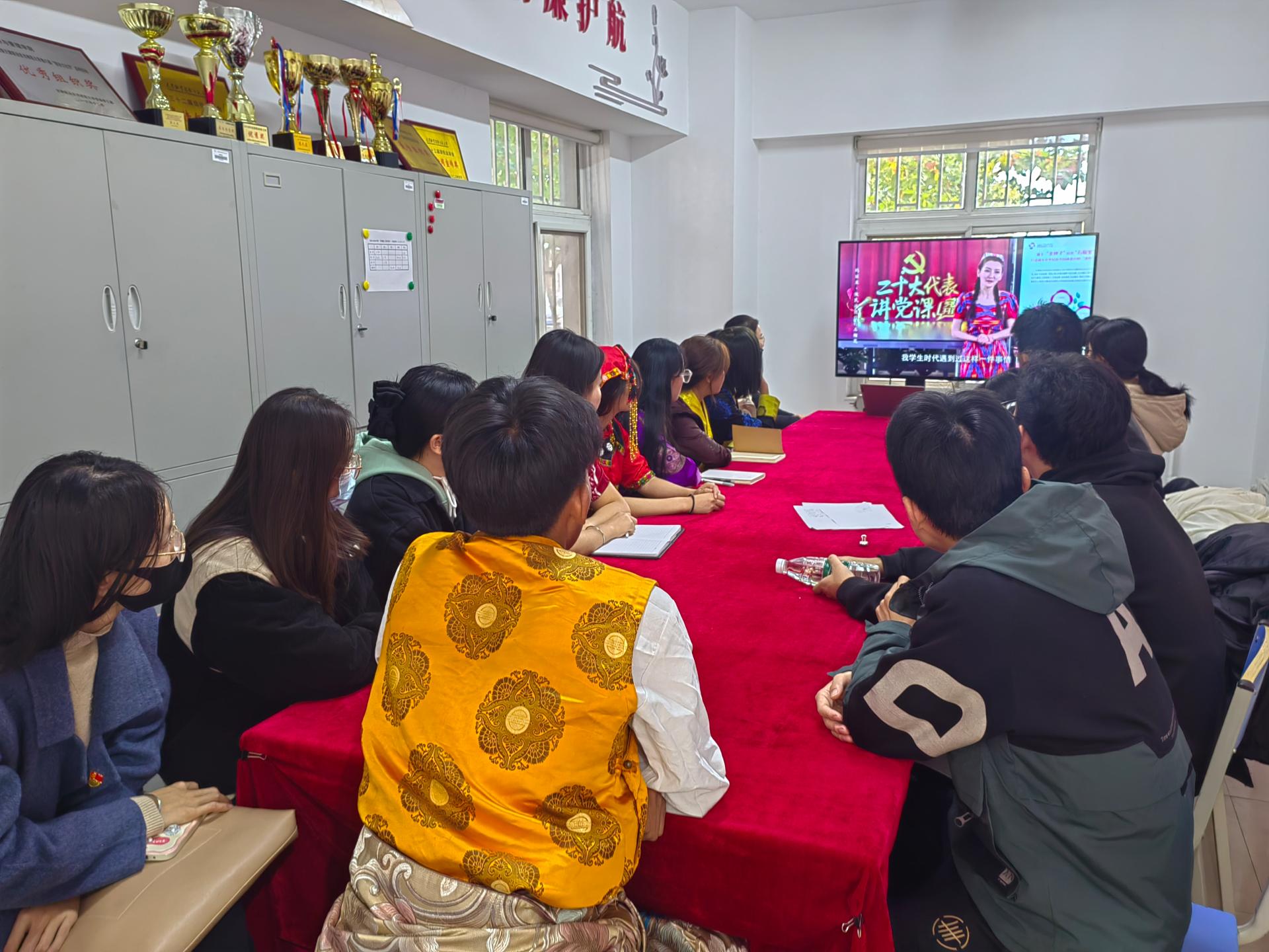 组织学生党员及少数民族学生代表在“一站式”学生社区,集中收看由市委组织部、海河传媒中心联合制作的《党课开讲啦·二十大代表讲党课》专题节目第三期“玛丽亚·做民族团结的石榴花”。