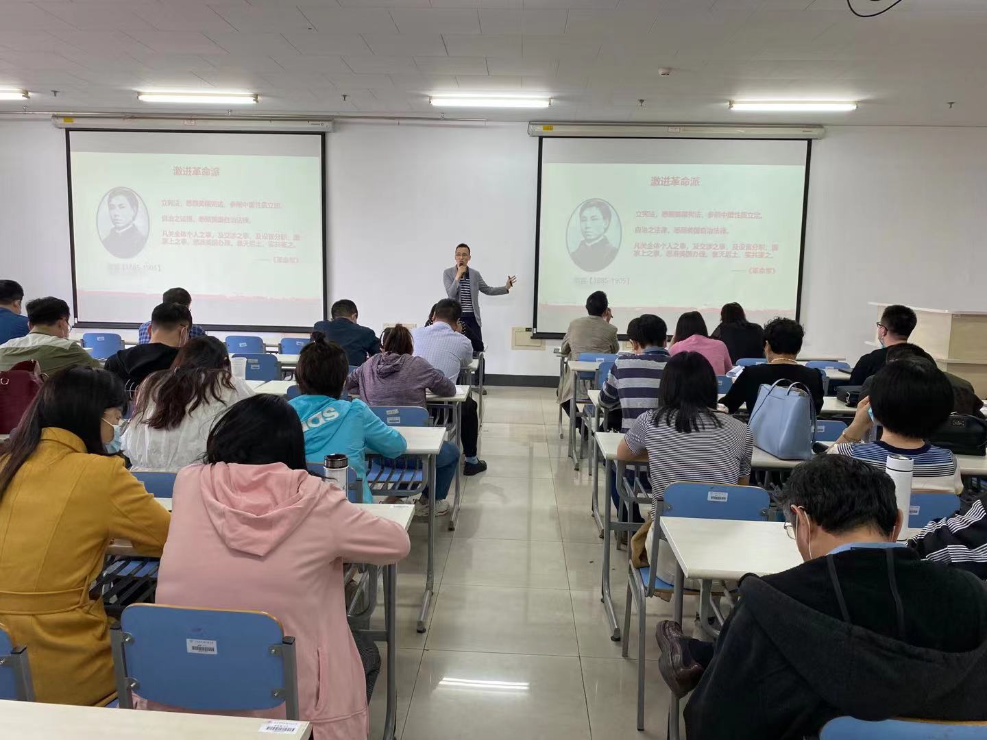 邀请马克思主义学院郑安定老师作党史学习教育辅导和课程思政建设指导专题讲座,会议由常务副书记吴平主持,学院全体教师参加。
