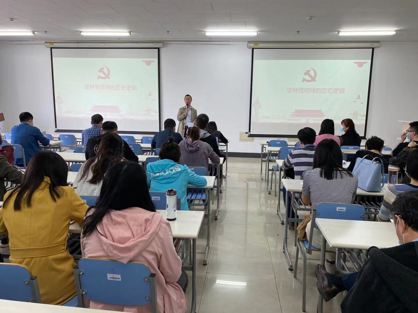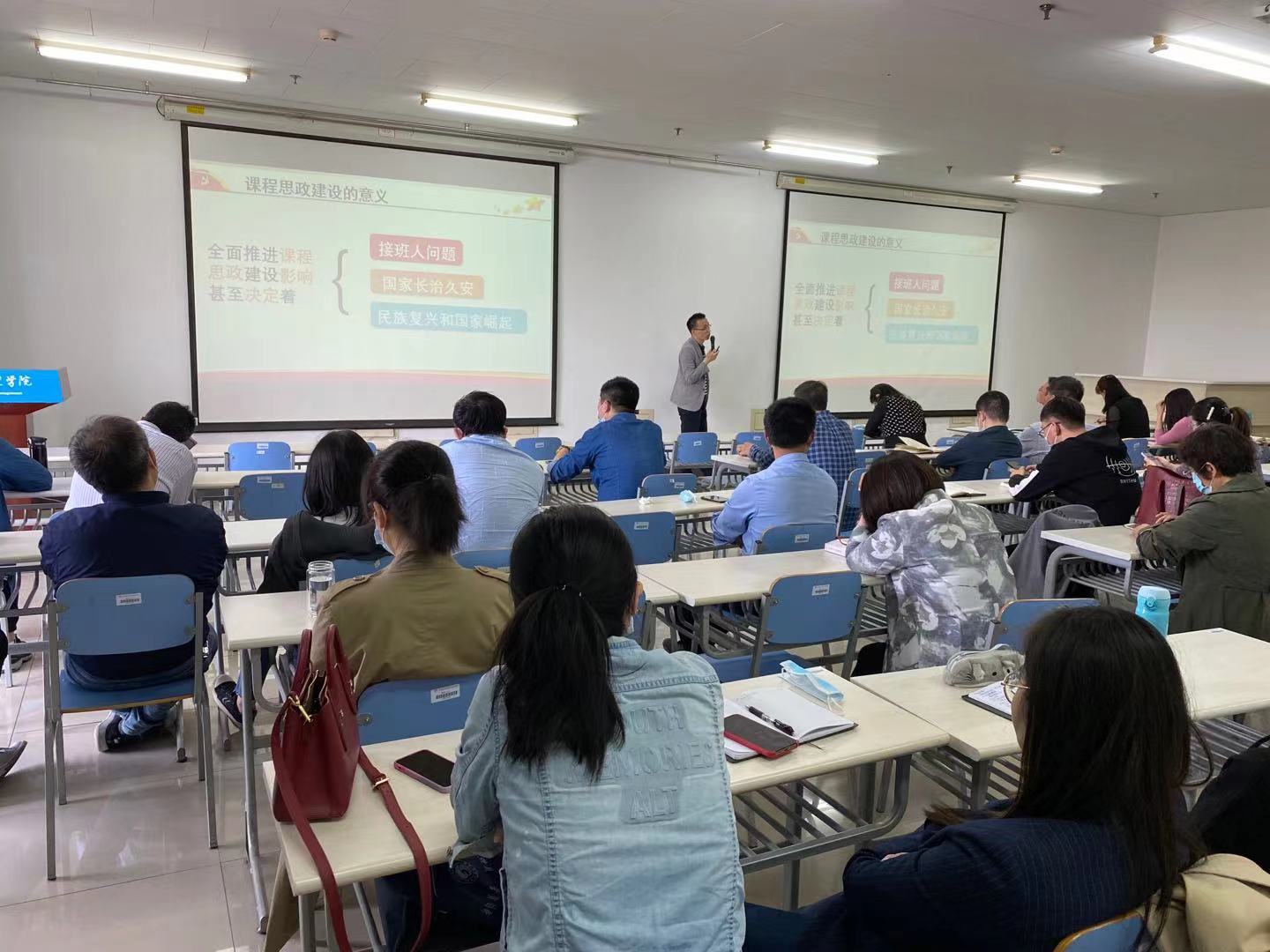 郑安定老师以“坚持党的领导的基本逻辑”为题,介绍了近代中国向西方“看齐”的结果、失败的原因分析及教训,从历史的角度阐述了中国共产党成立的必然性,分析了中国共产党为什么能的历史逻辑。在课程思政建设指导方面,他讲授了课程思政的理念与基本方法,从课程思政的提出及意义、课程思政的内涵、学与教的原理、教学设计要素以及课程思政要避免的误区五个方面进行详细讲解。
