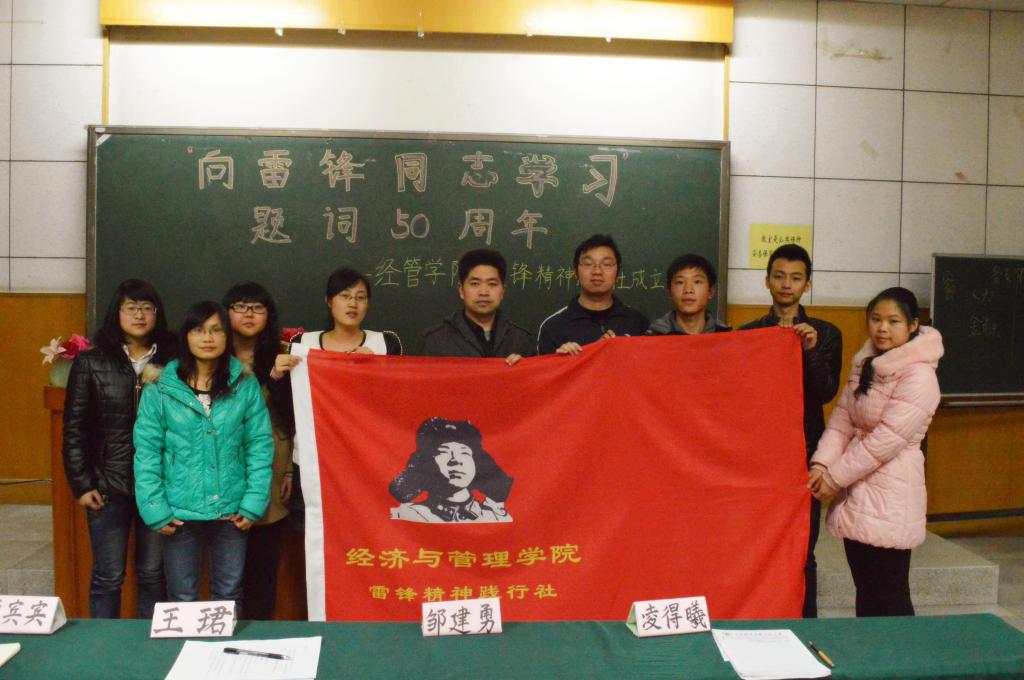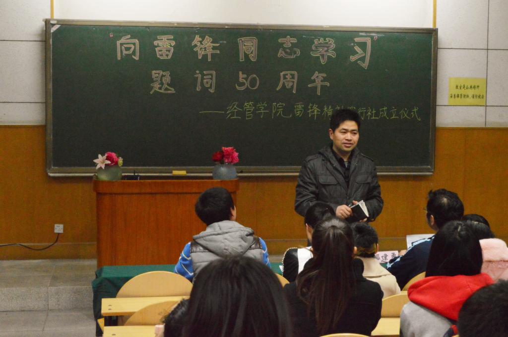 今年是老一辈革命家“向雷锋同志学习”题词50周年,为更好地学习、宣传雷锋精神,3月5日晚,经管学院举行了雷锋精神践行社成立仪式。学院党总支副书记邹建勇出席,学生党员及入党积极分子参加了成立仪式。