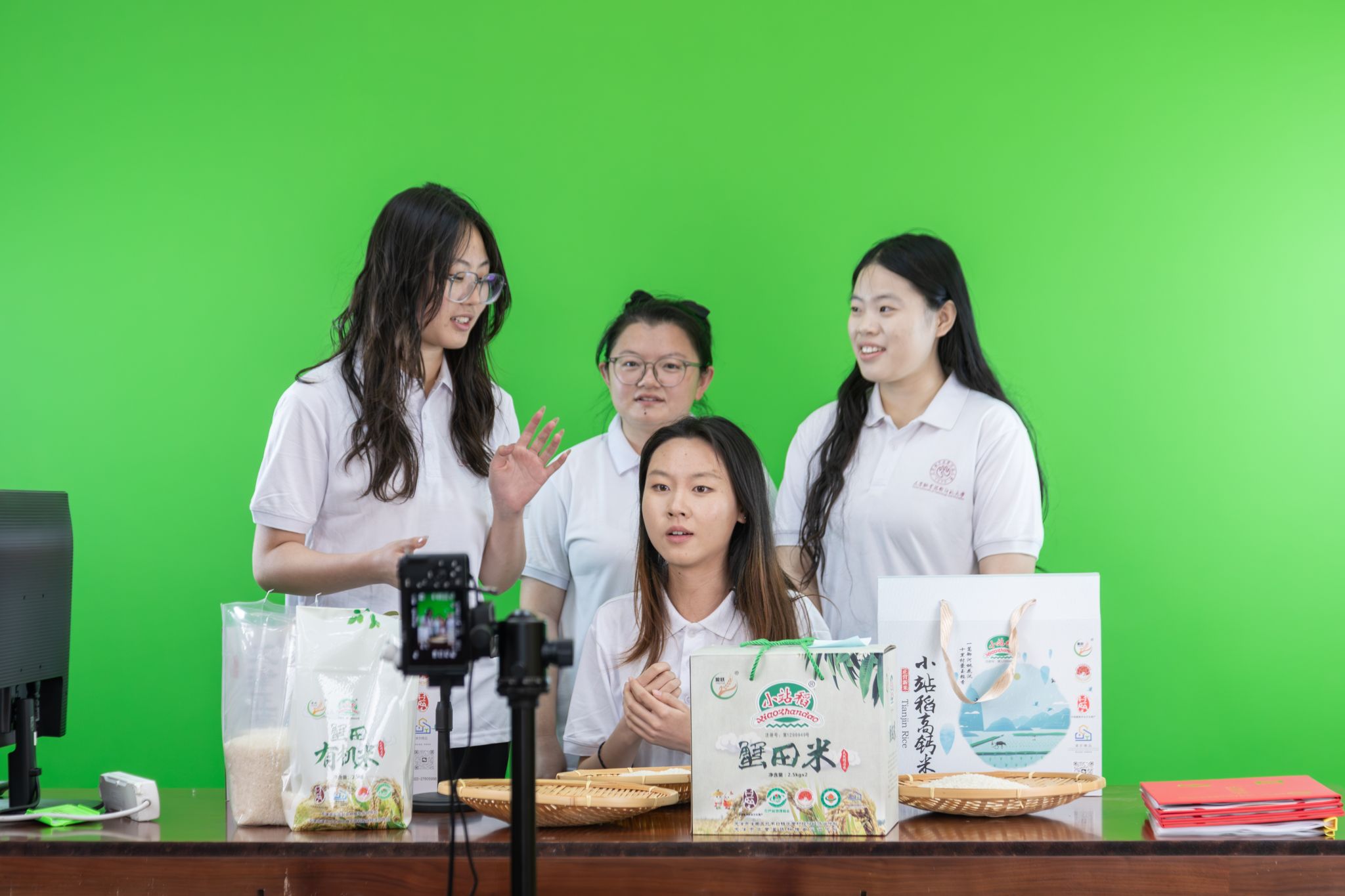 在2025年天津市劳动模范、正营村党委书记苏利军的指导下,学院一行走进劳模和工匠人才创新工作室开展直播助农活动。直播间内,同学们化身“带货达人”,积极推荐正营村“盈跃”牌小站稻,并详细介绍了小站稻的历史渊源、生态种植技术和品牌价值。通过热情互动,解答疑问,吸引了广大网友的关注与支持,为乡村振兴注入“云力量”。