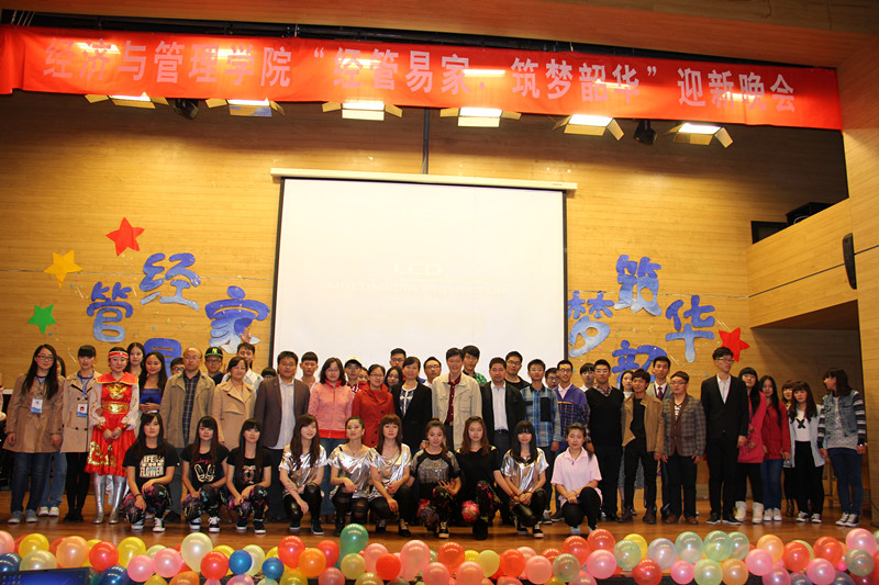 在小礼堂举办了主题为“经管易家,筑梦韶华”迎新晚会。经管学院院长赵丽华、院党委书记程中、副院长张炼周、院党委副书记邹建勇、学生办公室主任李楠、团总支副书记牛芊、辅导员及2014级新生班主任老师出席晚会,全体2014级新生参加。