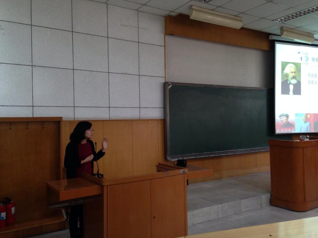 迟老师首先对社会主义核心价值观的五项内容作了简要解读,然后从坚持马克思主义指导思想引出马克思主义的发展历程、社会地位,从中国近代史鸦片战争到辛亥革命、新文化运动,生动解读了社会主义核心价值观。并结合十八届三中全会关于社会主义核心价值观的最新概括,做了更深入的讲解。她强调,学习社会主义核心价值观不仅学习的是内容,更重要的是“知行合一”。作为老师,要不断提升自我修养,用行动影响学生,用思想鼓励学生,用自律教育学生。作为学生党员,要从点滴细微做起,在学习生活中起到先锋模范作用,践行社会主义核心价值观。