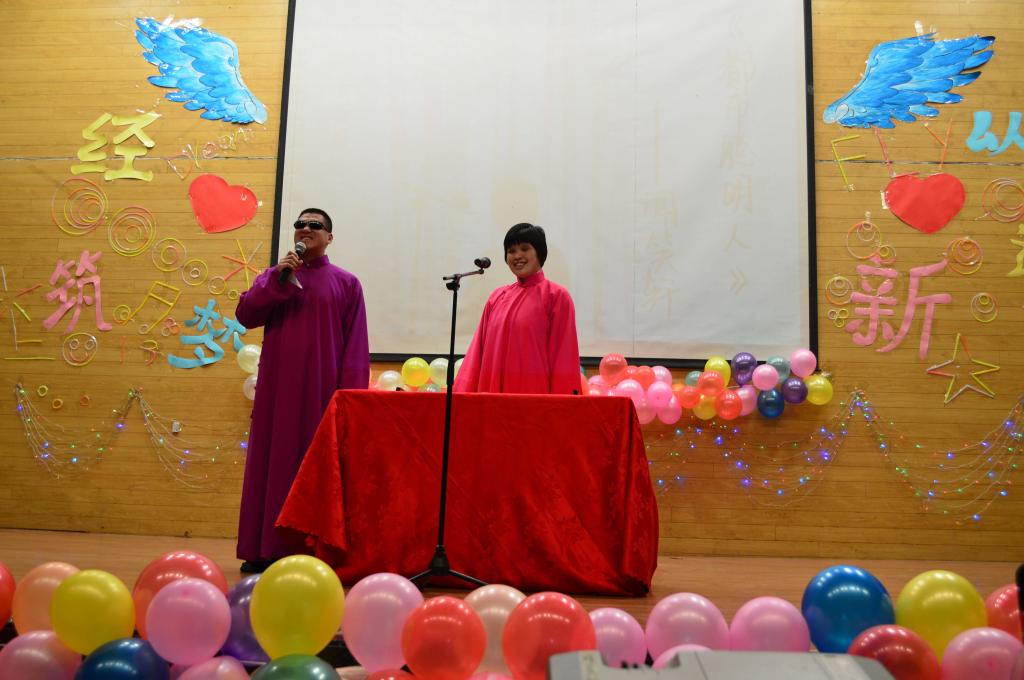由经管学院学生会自编、自导、自演的话剧《经管的感动》是此次晚会的亮点之一,它体现了经管学子乐于助人,知恩图报的优秀品质。本次晚会还特邀了全国第一个盲人专业相声社团“闻笑轩”相声社为大家奉上地地道道的天津相声《都市聪明人》,在场的470多名观众连声称赞、掌声此起彼伏,天津电视台进行了录像报道。