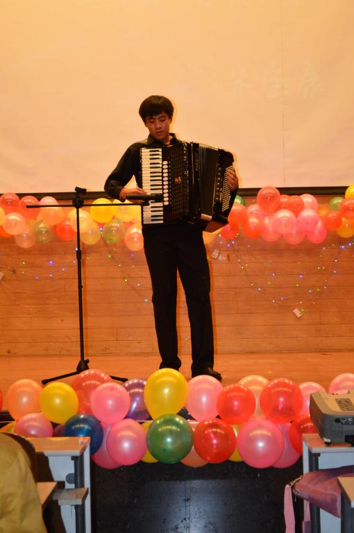 此外,来自天津音乐学院民族声乐系梁晶晶同学的一曲《望月》和手风琴键盘系朱宝康同学的一曲流行手风琴乐曲《摇摆的曼波》博得了在场观众的阵阵欢呼。Cosplay的演出形式更是让喜爱动漫的年轻人过足了眼瘾。另外,晚会中“微博墙”的使用,增强了整场晚会的互动性,屏幕上滚动的一串串或俏皮或激昂的字幕充分体现了同学们的无比喜悦和极大热情。