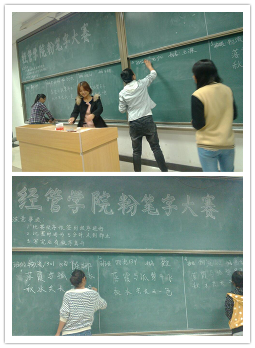 二是举办了大学生钢笔、粉笔规范字书写大赛,以书写规范、结构准确、运笔流畅、版面整洁、章法自然为评判依据。参赛选手们认真书写、一丝不苟,钢笔字飘逸、雄浑,粉笔字公整规范、潇洒秀美,于一笔一划中展示了其良好的书法功底。