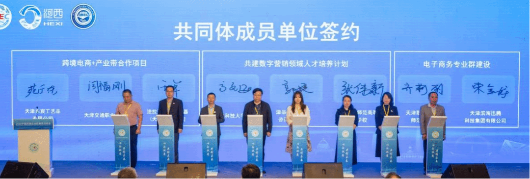 与天津滨海迅腾科技集团有限公司现场签署合作协议,成为共同体首批落地实施的合作项目,双方将在数字营销人才培养标准拟制、电子商务专业群建设及教学资源研发等方面展开深度合作,为制造业数字营销领域培养和输送专业技能人才。