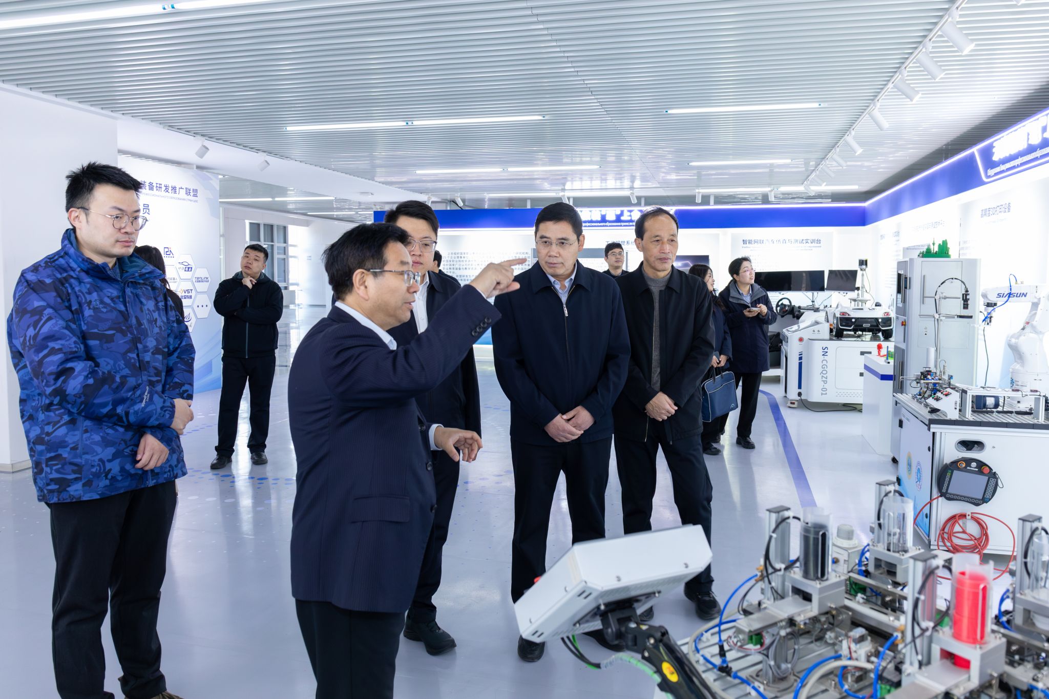 签约仪式前,石家庄国经集团一行还观看了学校宣传片,实地参观了学校工程实训中心、数智化教育装备产业学院、中国 —上海合作组织职业技术教育合作中心,近距离了解了学校的办学条件、实训教学和科研平台建设情况,对学校的办学特色和实践教学水平给予高度评价。